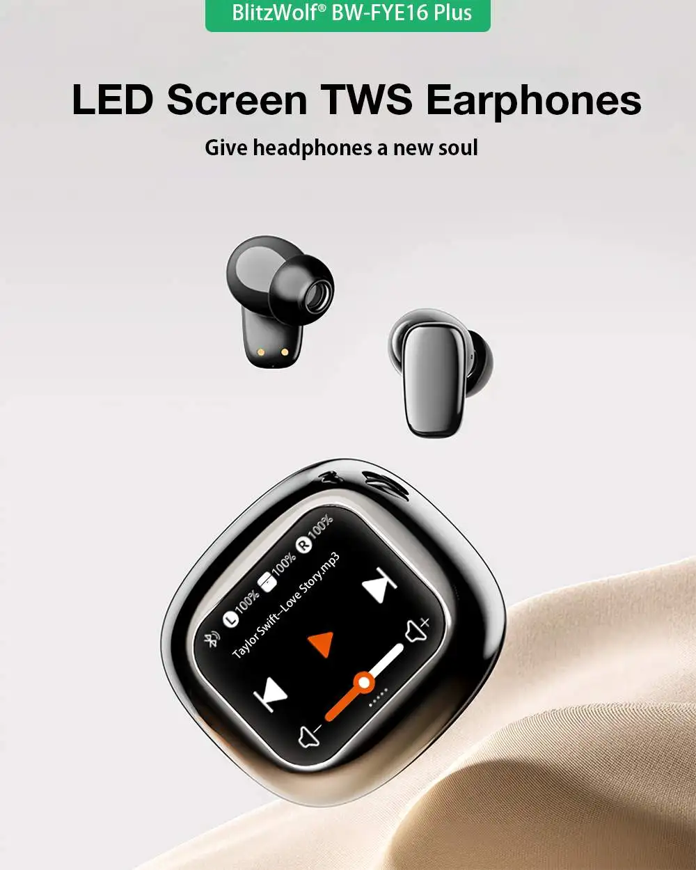 Comprar BlitzWolf-auriculares BW-FYE16 Plus con bluetooth, dispositivo de audio con pantalla LED TWS, pantalla táctil colorida, cancelación activa de ruido y altavoz