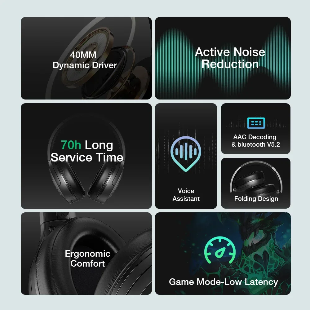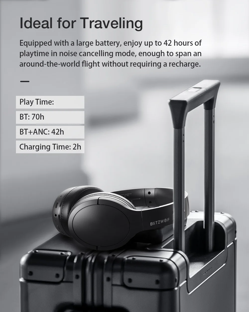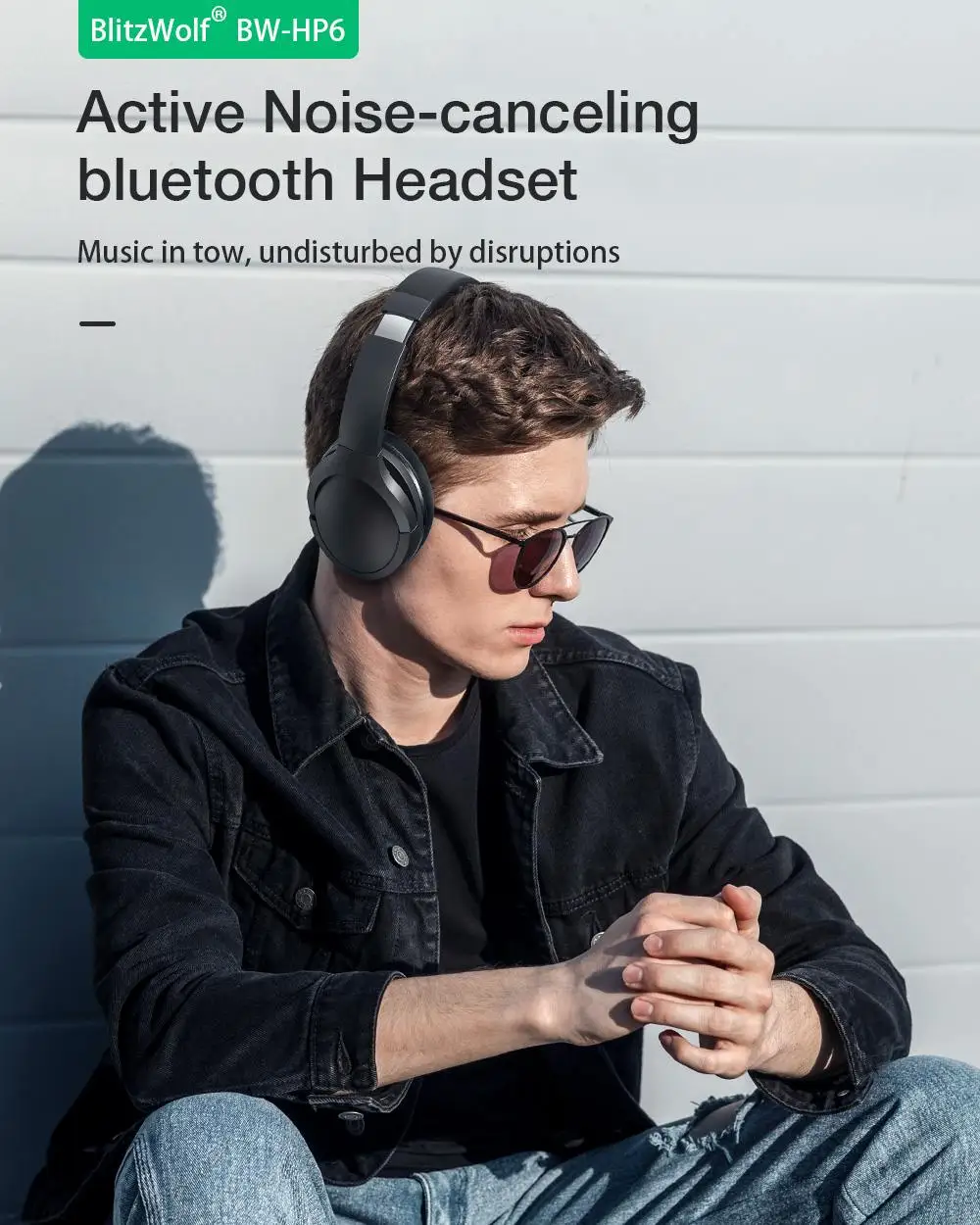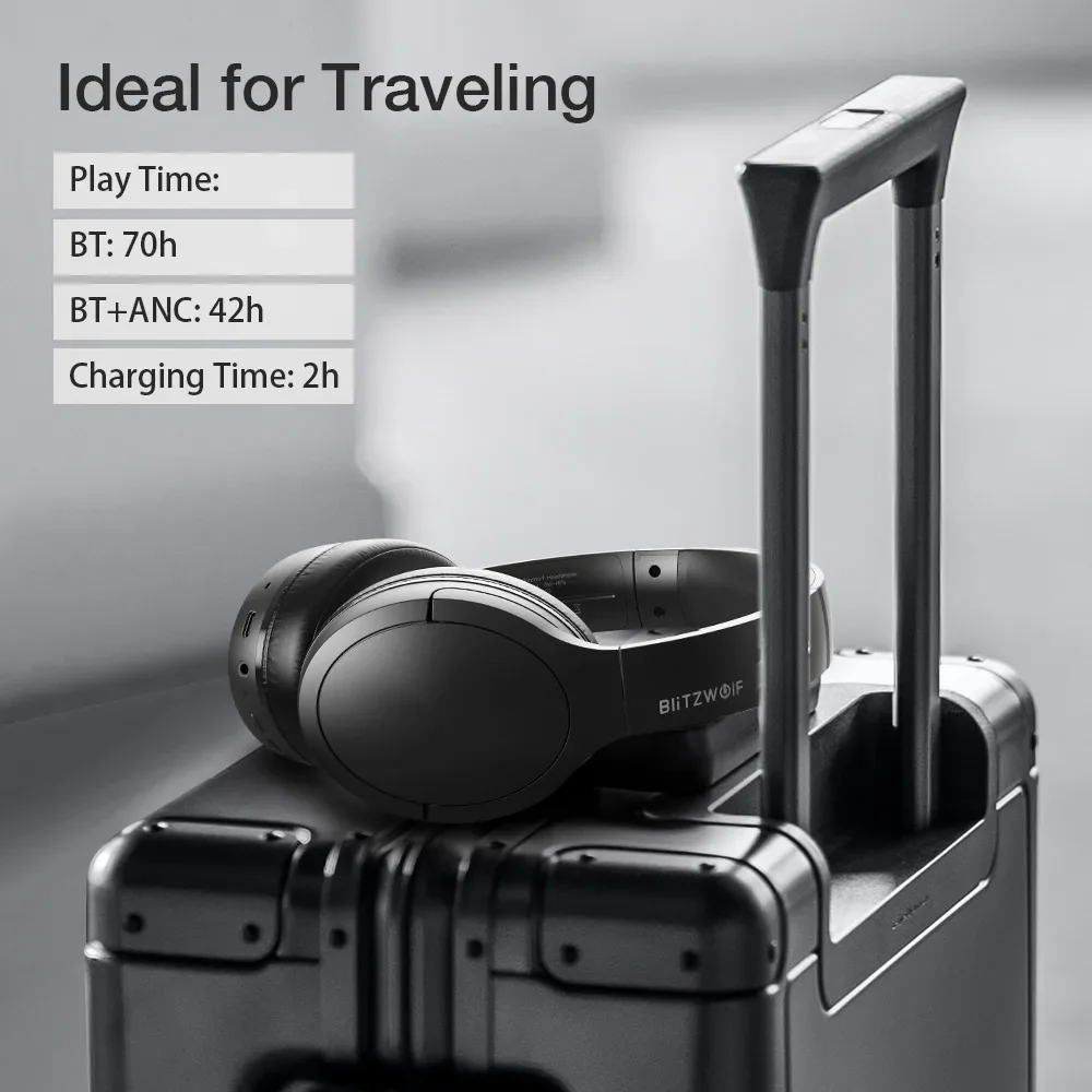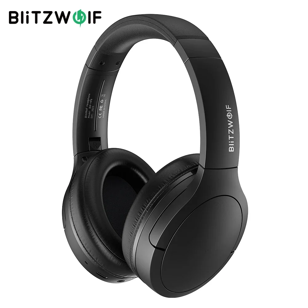 Comprar BlitzWolf-auriculares inalámbricos BW-HP6, cascos con bluetooth, cancelación activa de ruido, 40mm, controladores grandes, Audio AAC, 70h, portátiles