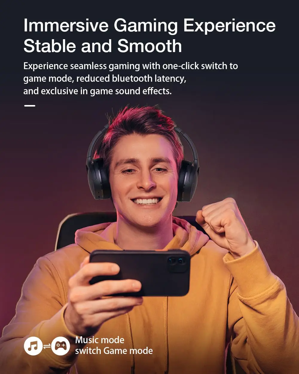 6. Experimente juegos sin problemas con un solo clic para cambiar al modo de juego, latencia Bluetooth reducida y exclusivo en efectos de sonido del juego.