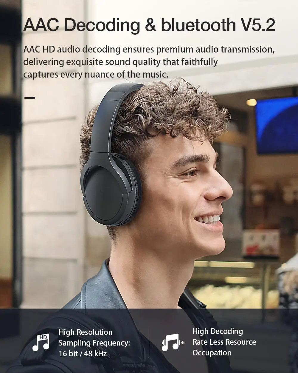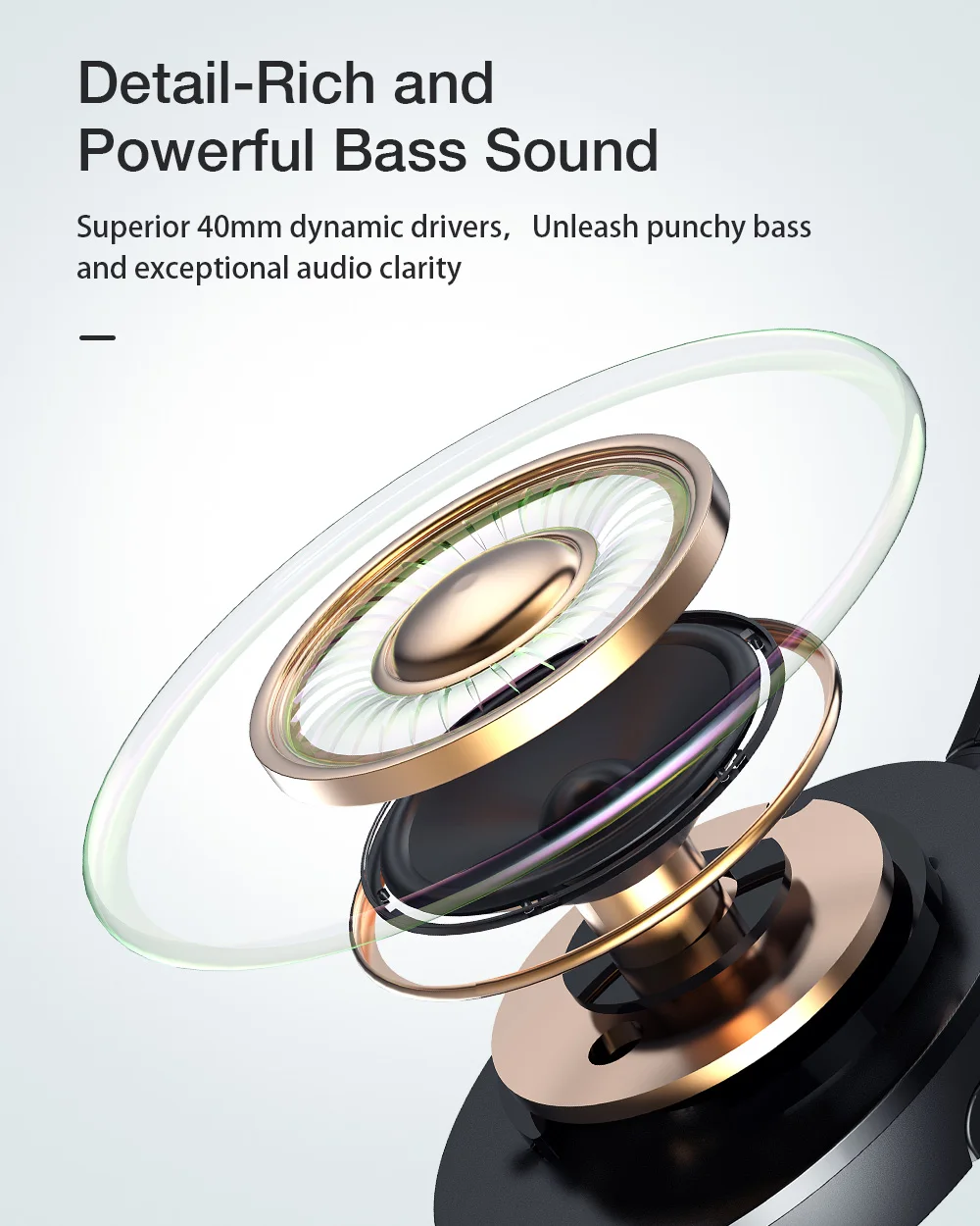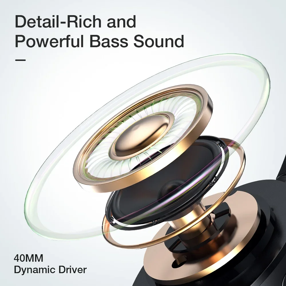 3. La decodificación de audio AAC HD proporciona una transmisión de audio de mayor calidad y una excelente calidad de sonido, restaurando cada detalle del sonido. 4. Controladores dinámicos superiores de 40mm, liberan graves contundentes y una claridad de audio excepcional.