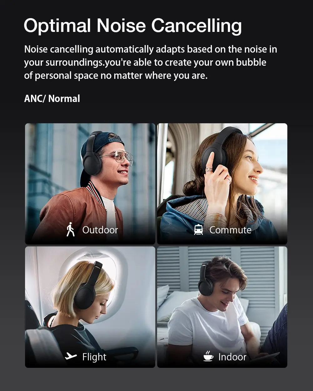 1. ANC avanzado: Sumérgete en tu música sin distracciones. La función de cancelación activa de ruido bloquea el ruido externo, lo que le permite acceder a sus pistas favoritas.