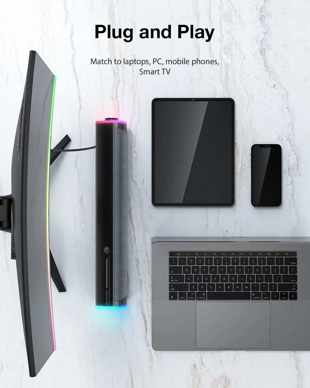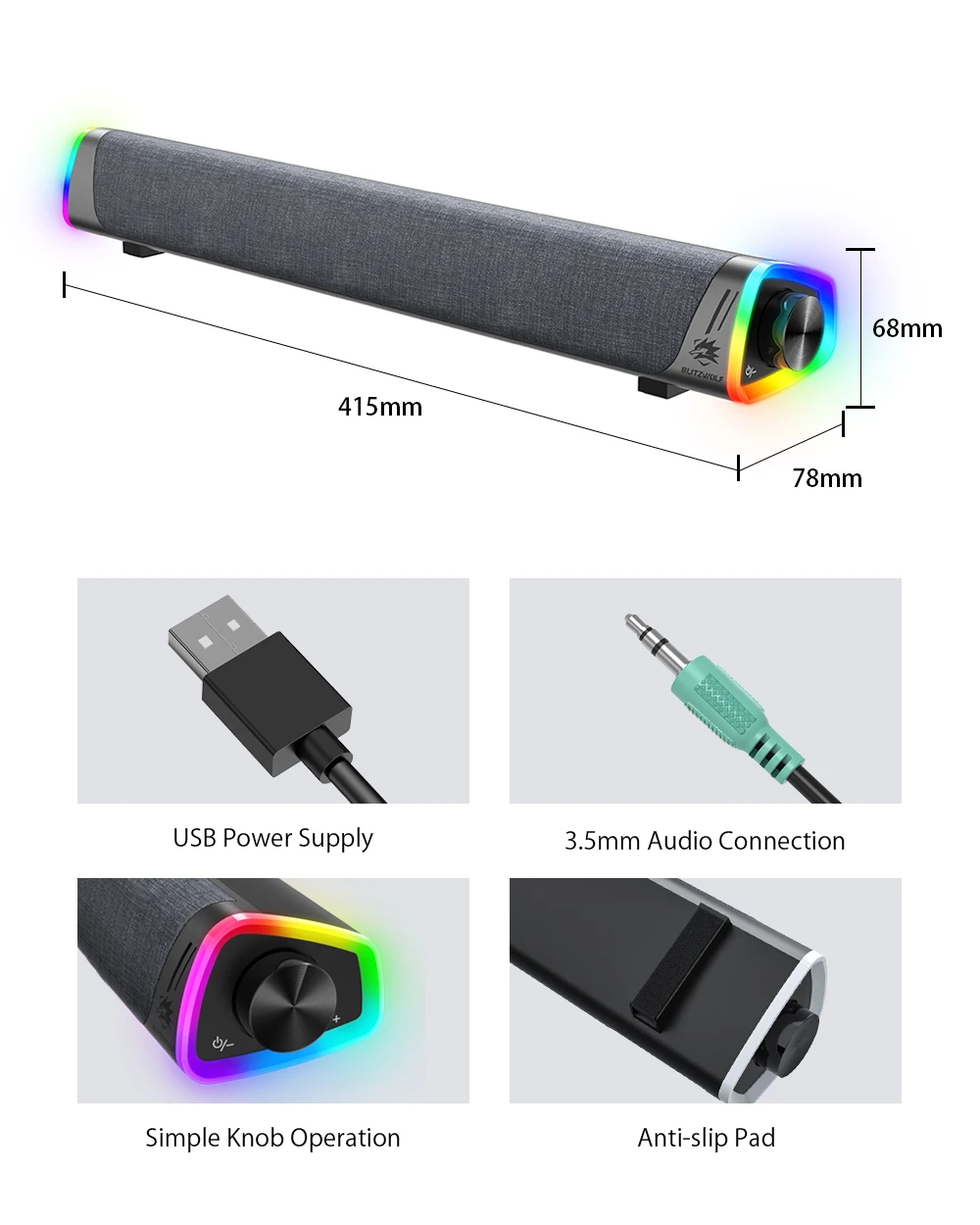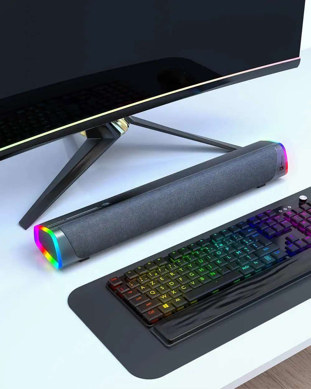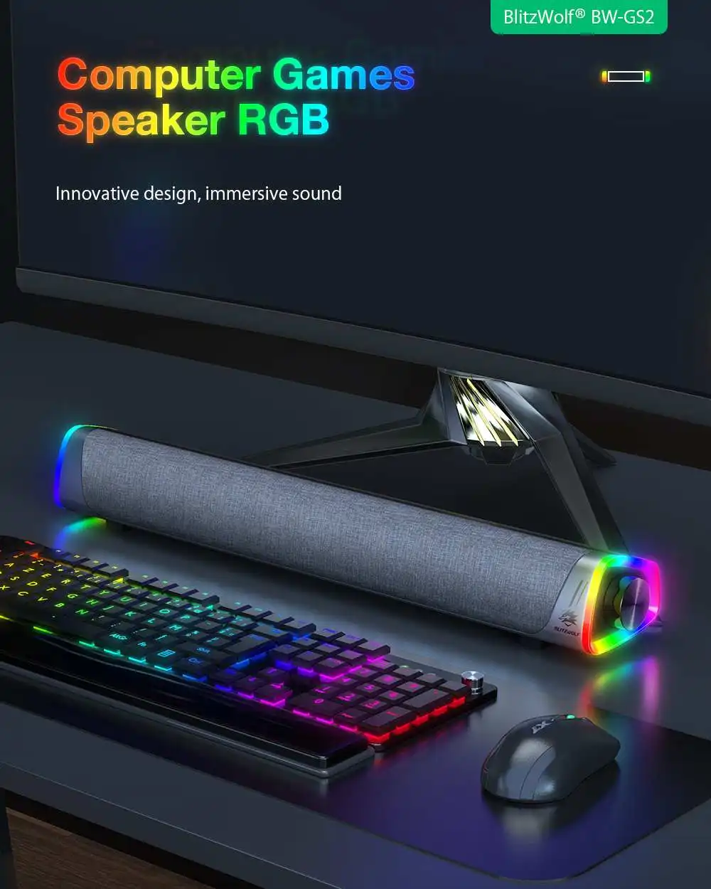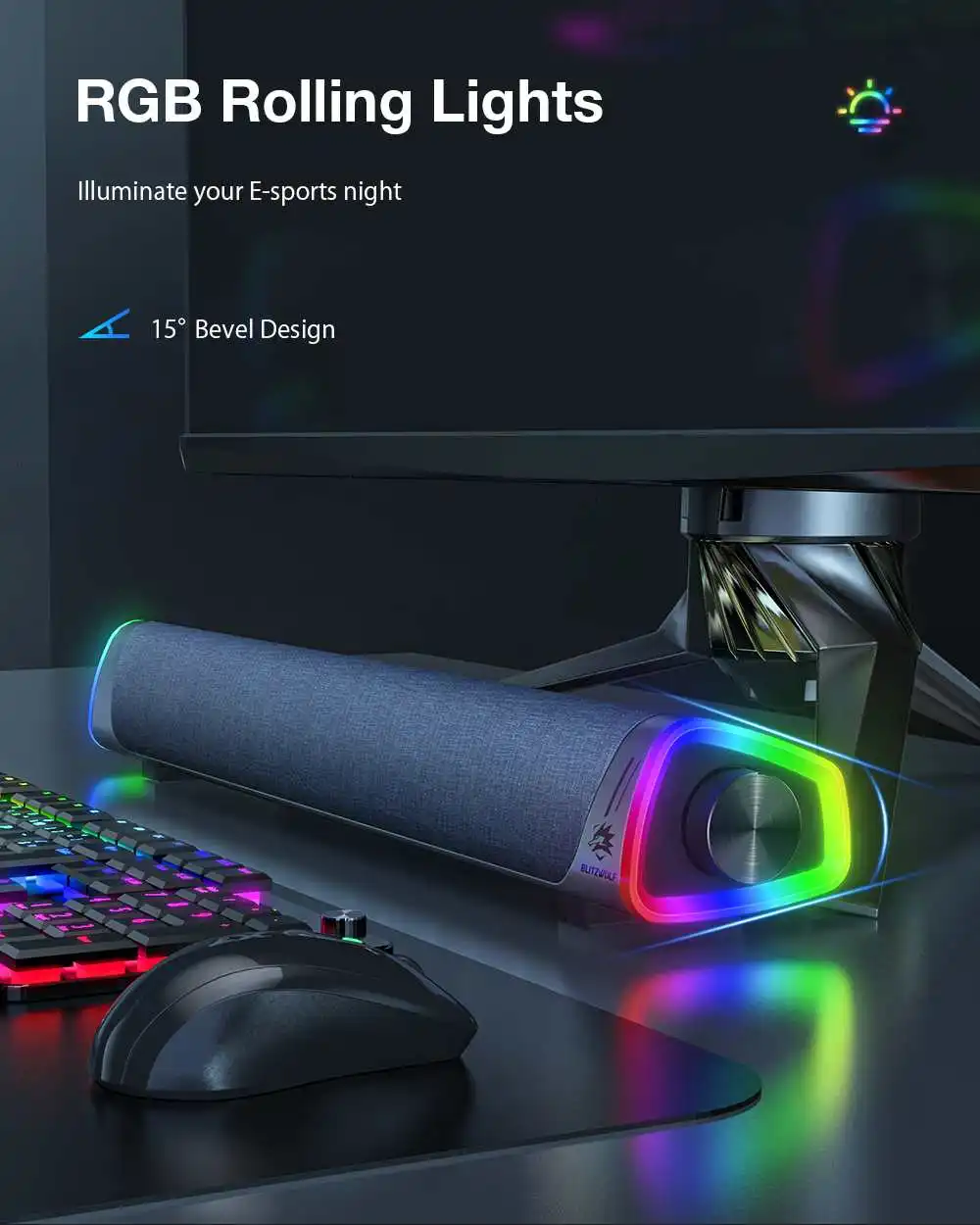 Comprar BlitzWolf-Barra de sonido estéreo para juegos de ordenador, altavoz con altavoces duales, 2,0 canales, luz RGB, 360 °