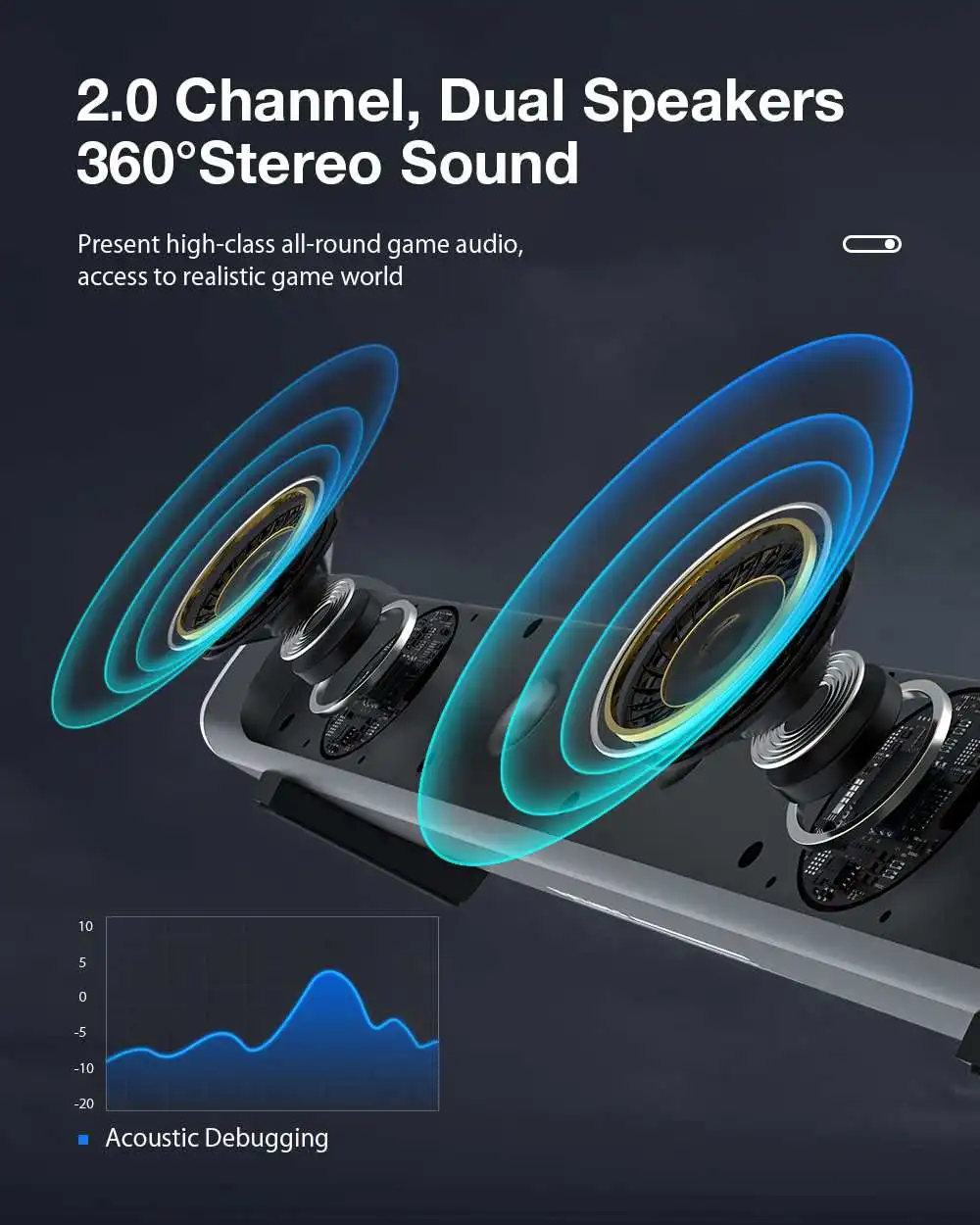 1. Altavoces duales de 2,0 canales y sonido estéreo de 360 °: presenta un juego completo de audio de alta calidad, acceso al mundo del juego realista.