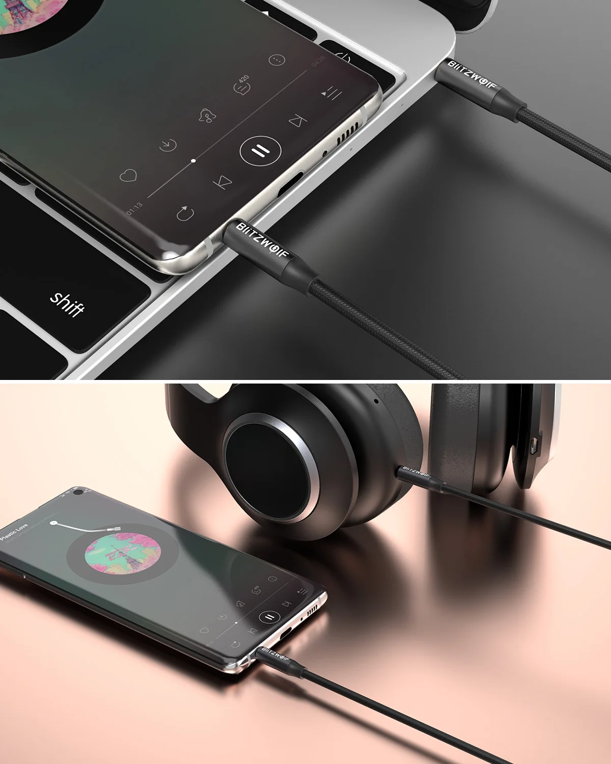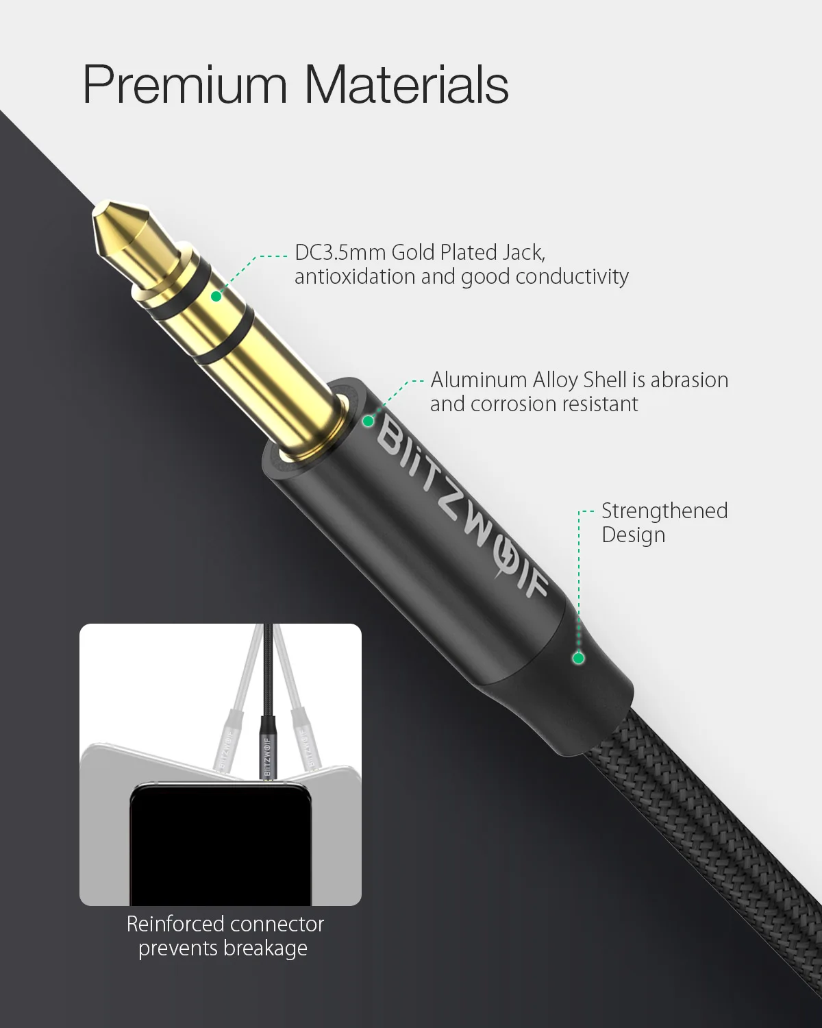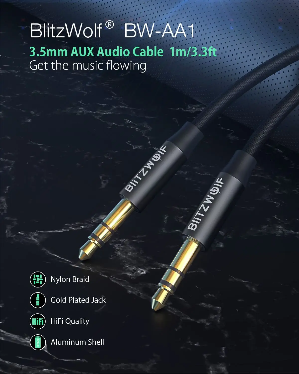 1 * Cable de audio auxiliar BlitzWolf de 3,5mm, 1m/3,3 pies