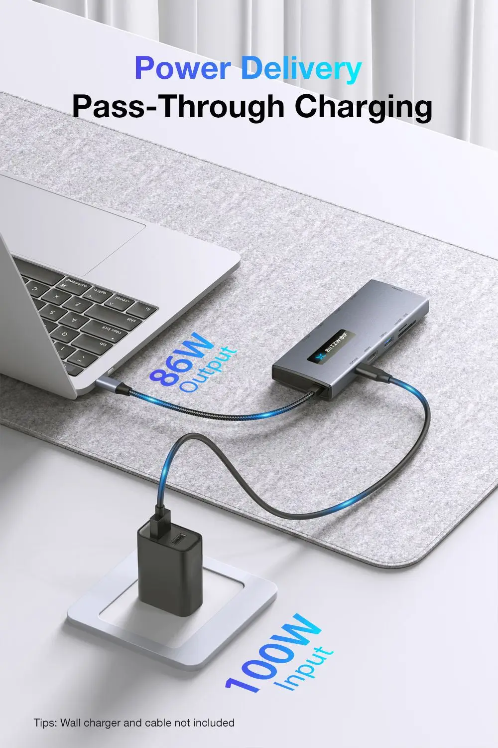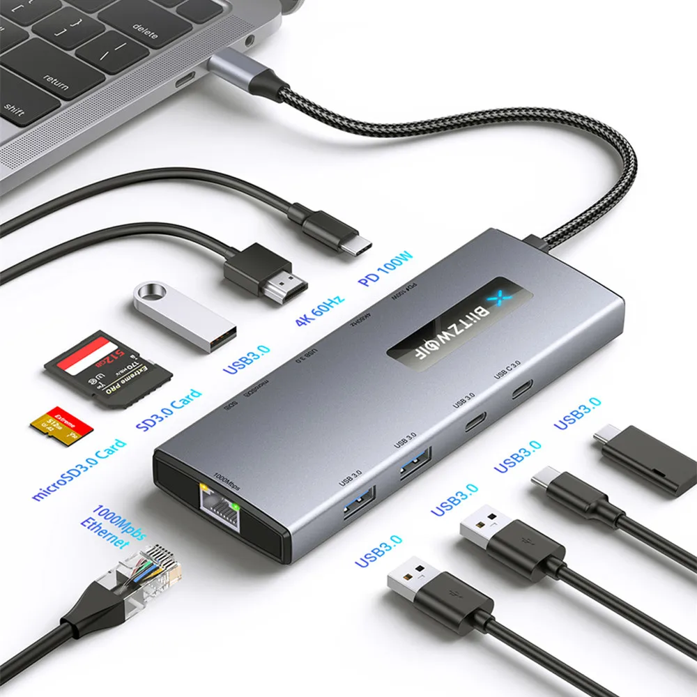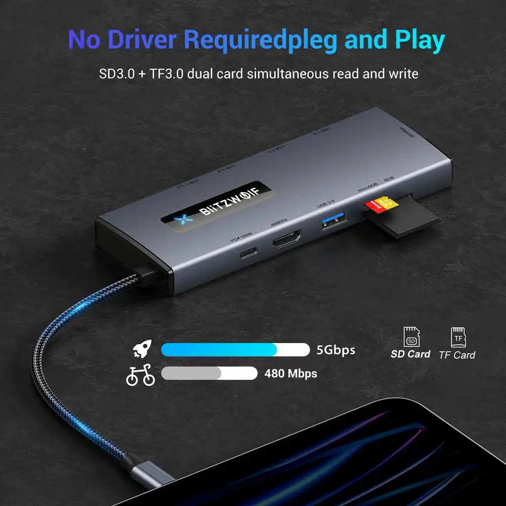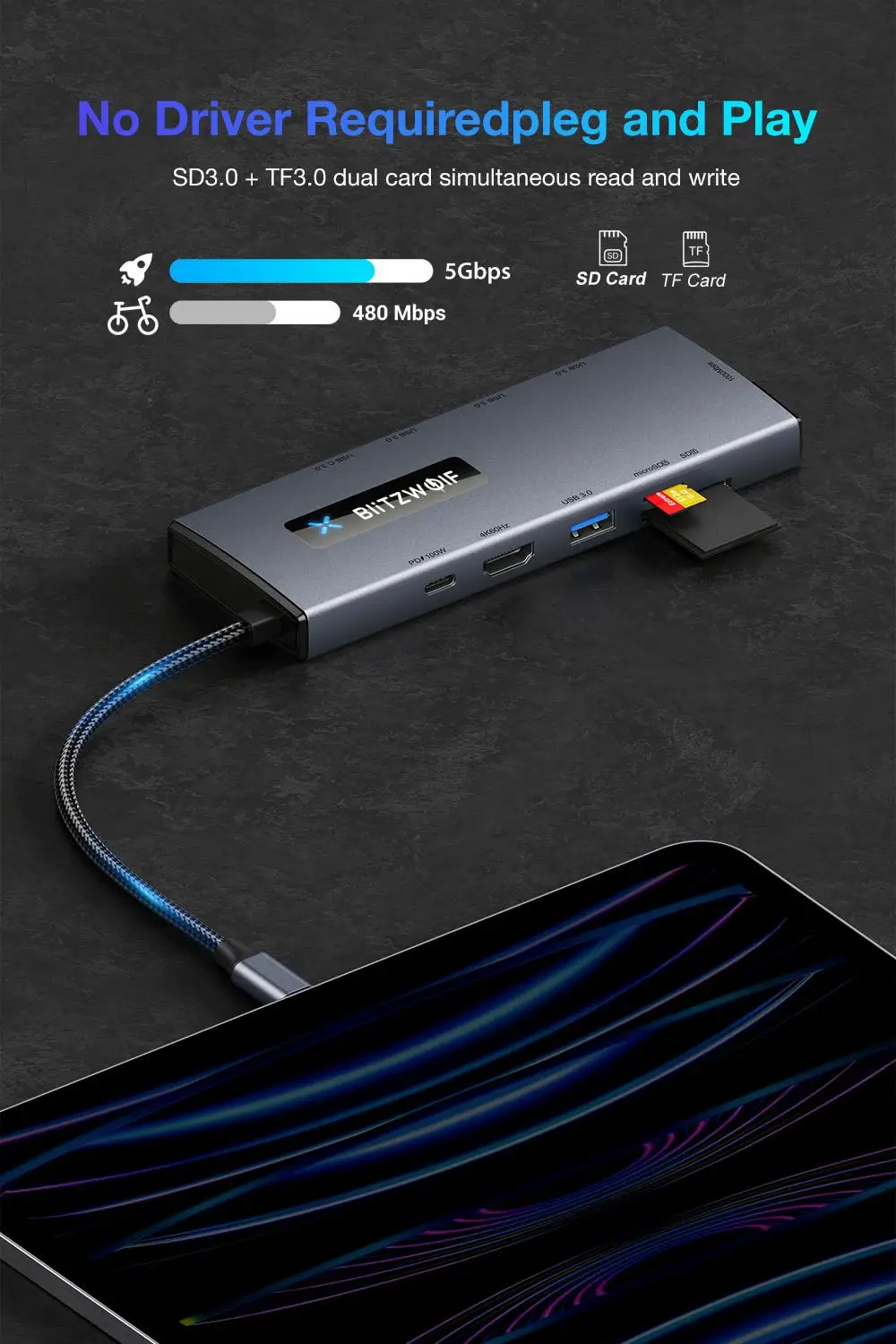 Comprar BlitzWolf-concentrador tipo C BW-NEW TH8, 10 en 1, con tipo-c PD, 100W, entrega de energía, USB3.0, tipo-c 3,0, 4K @ 60HZ, ranura para tarjeta SD y TF, RJ45