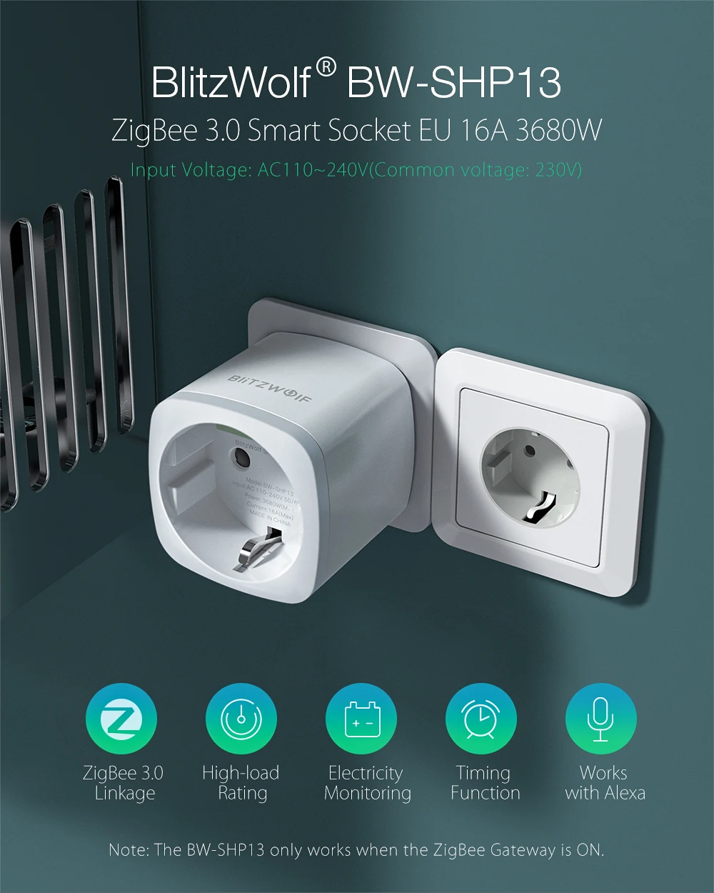 BlitzWolf ZigBee 3,0 Zócalo inteligente UE 16A 3680W, para el que se puede ver más