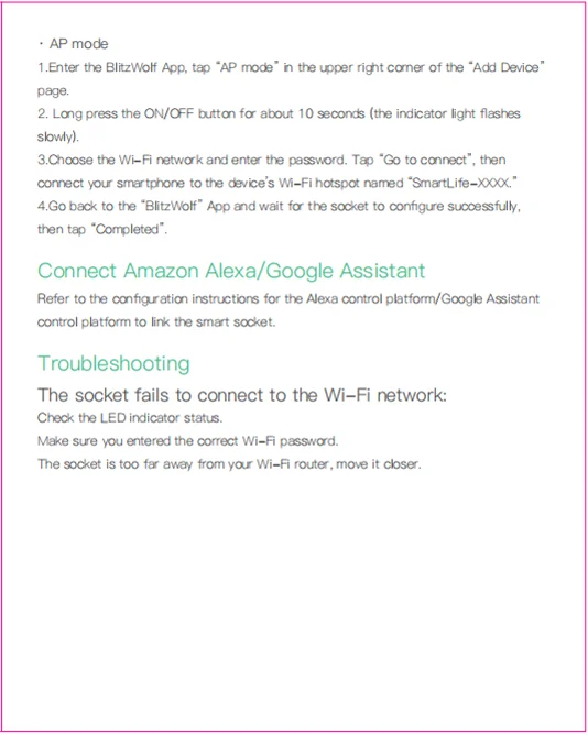 2. Se puede usar la aplicación Blitz Wolf y Smart Life. Se recomienda la versión en español de Alexa para descargar la aplicación Smart Lfie para su uso.