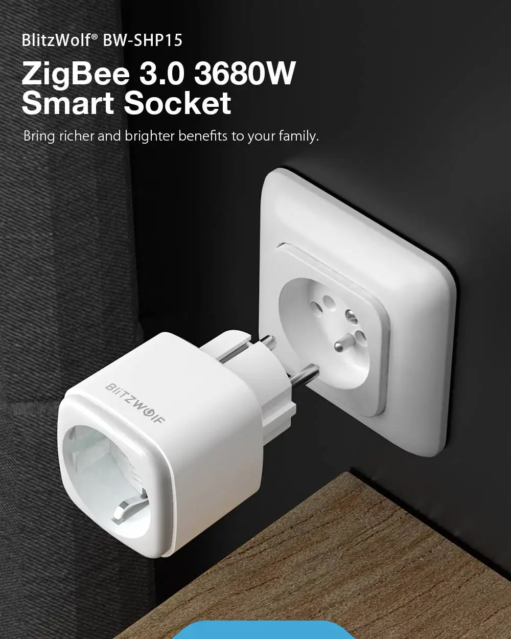 Comprar BlitzWolf-enchufe inteligente BW-SHP15 ZigBee 3,0, toma de corriente de 16A, enchufe europeo, Monitor remoto por aplicación, funciona con Alexa y Google Home