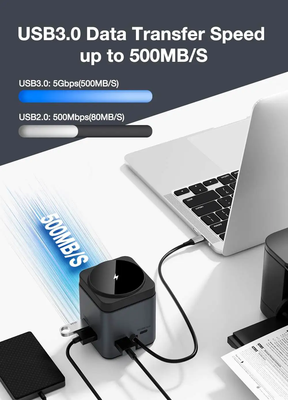 Material de la carcasa: Aleación de aluminio Pureza de salida: USB 3.0*3: 5 Gbps