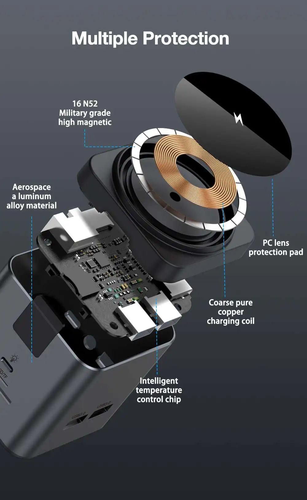 Función de carga inalámbrica:1.La potencia de carga inalámbrica se puede alcanzar cuando la fuente externa es de 100w y la computadora portátil se carga al mismo tiempo 15W.2.Si no hay una fuente de alimentación externa, la potencia de carga inalámbrica es de 5 W cuando conecta la computadora portátil directamente.