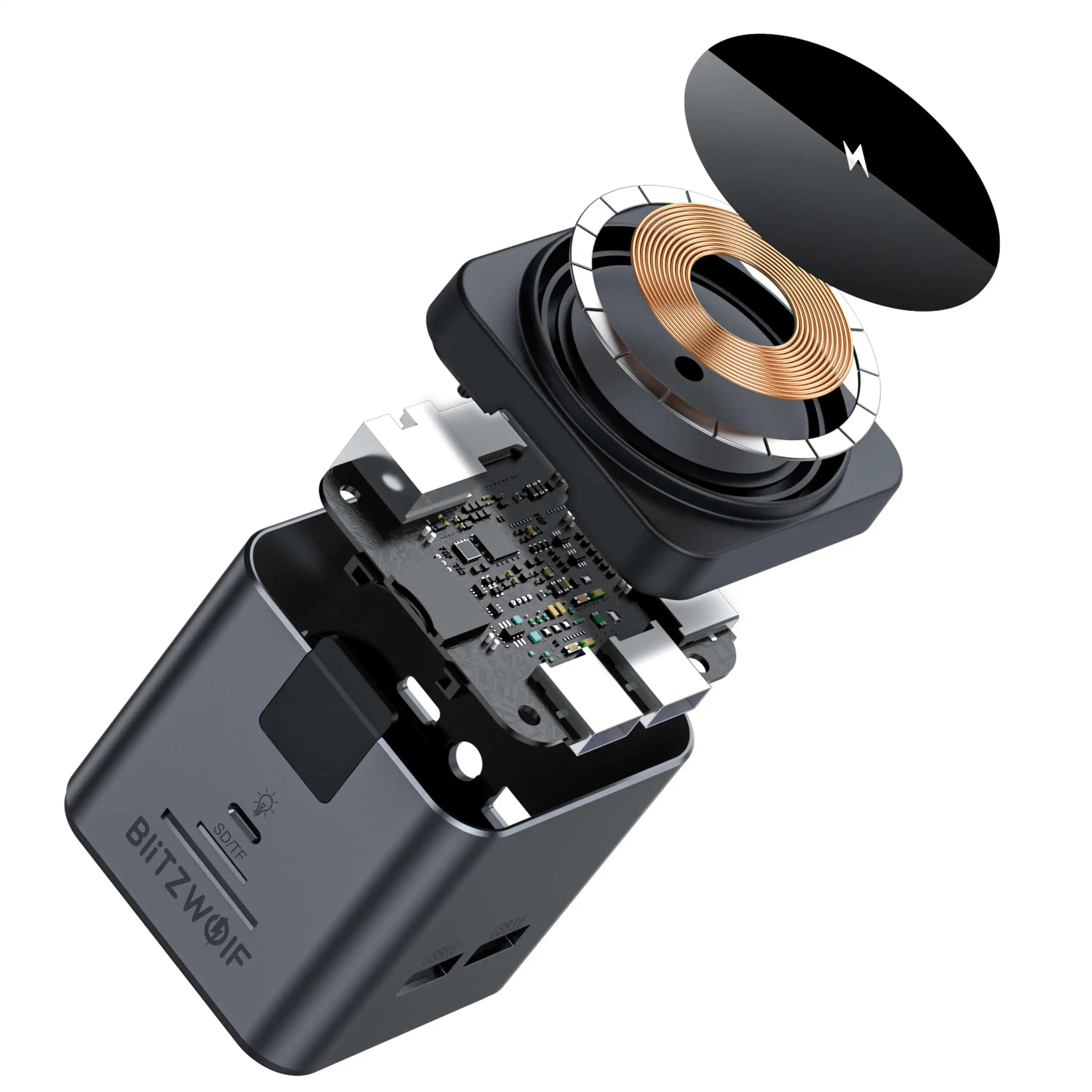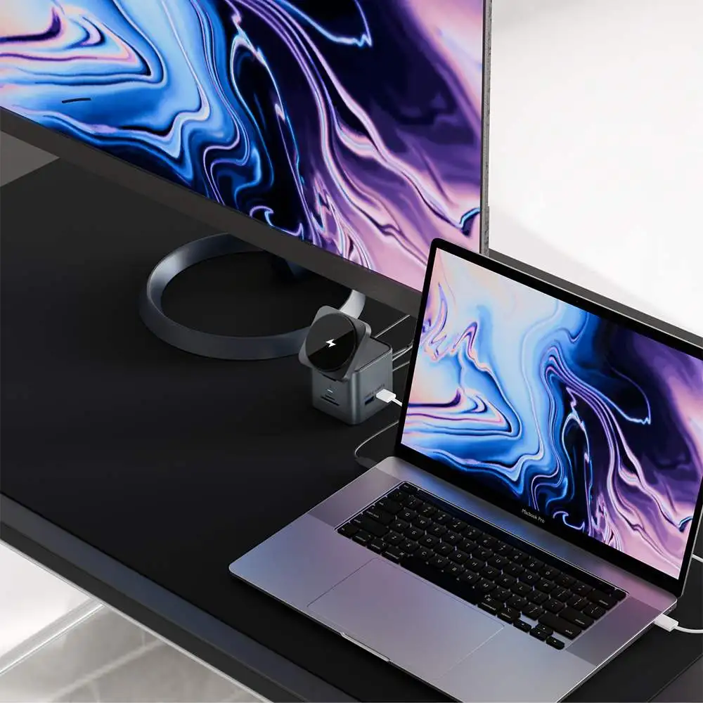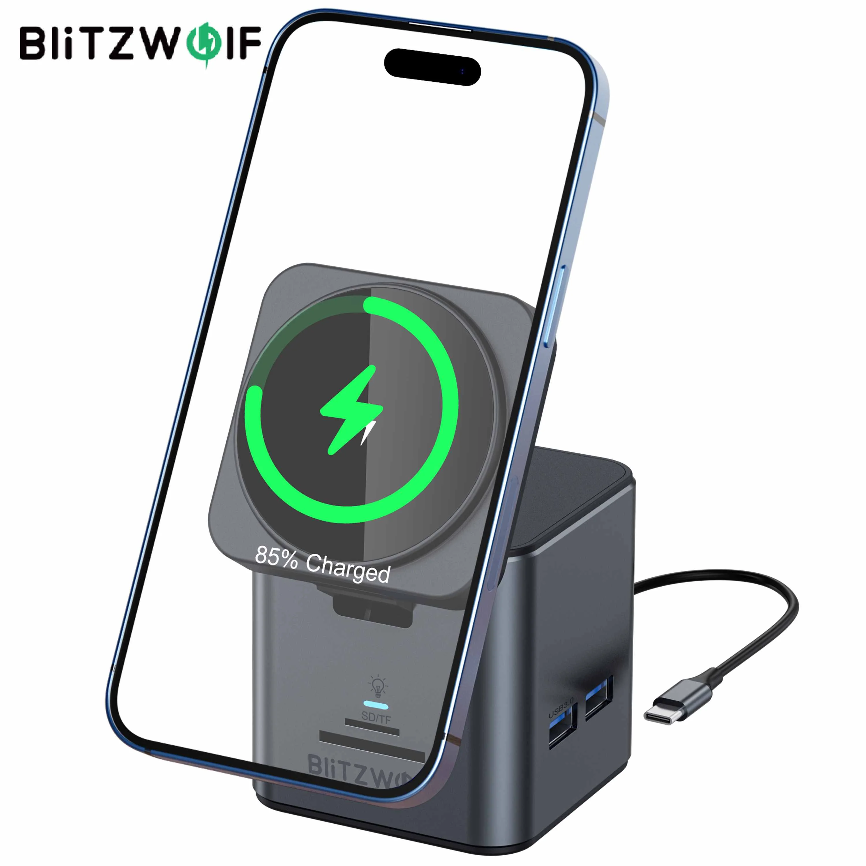 Comprar BlitzWolf-estación de acoplamiento BW-TH17 tipo C 9 en 1, cargador inalámbrico magnético de 15W, concentrador de USB-C con USB3.0 x 3 HD 4K @ 30Hz Gigabit