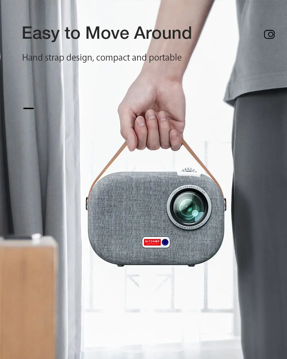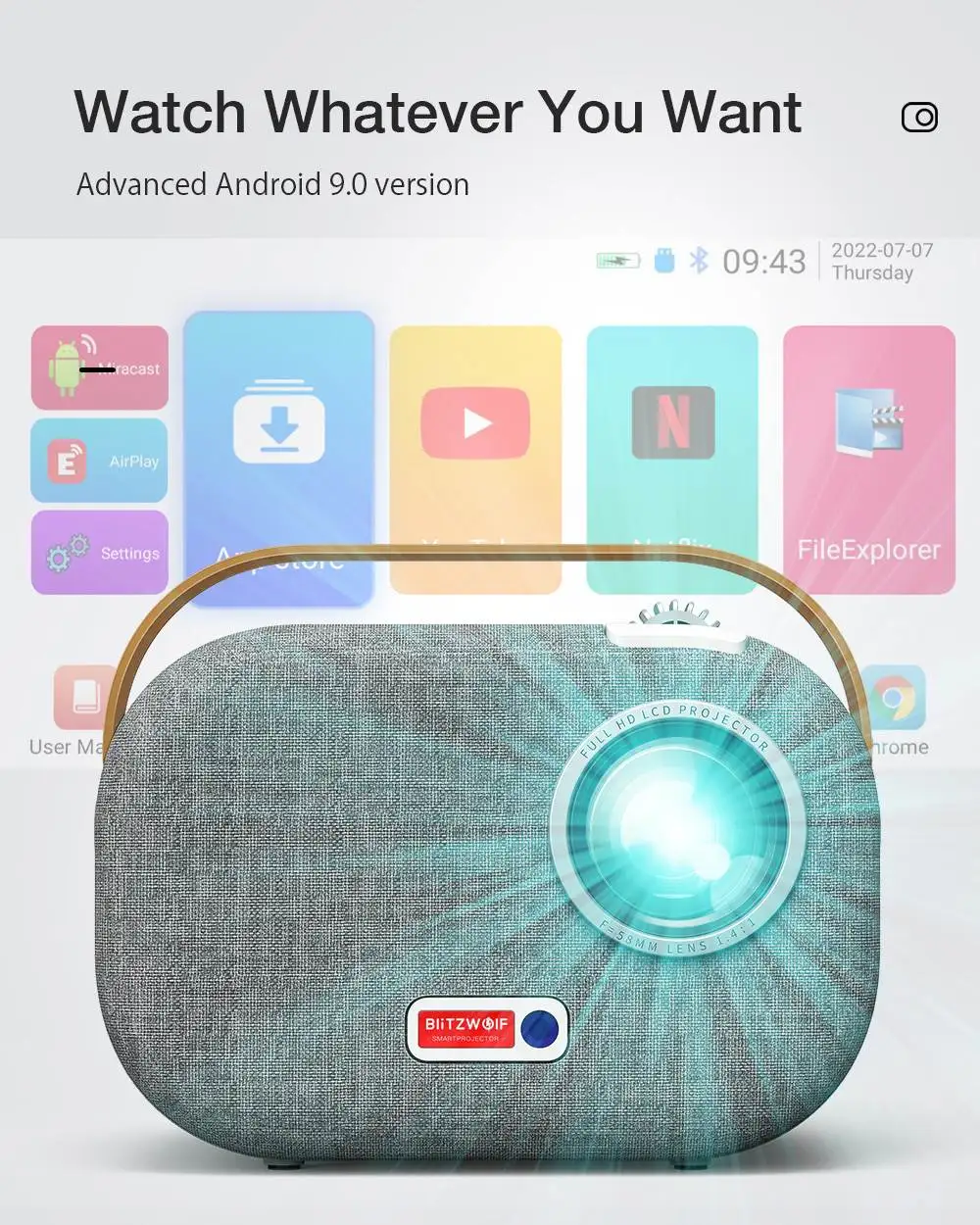 Comprar BlitzWolf-miniproyector Full HD para cine en casa, 2,4G/5G, Wifi, 1920x1080P, con 2 altavoces, 200ANSI, Android 9,0, enchufe estadounidense