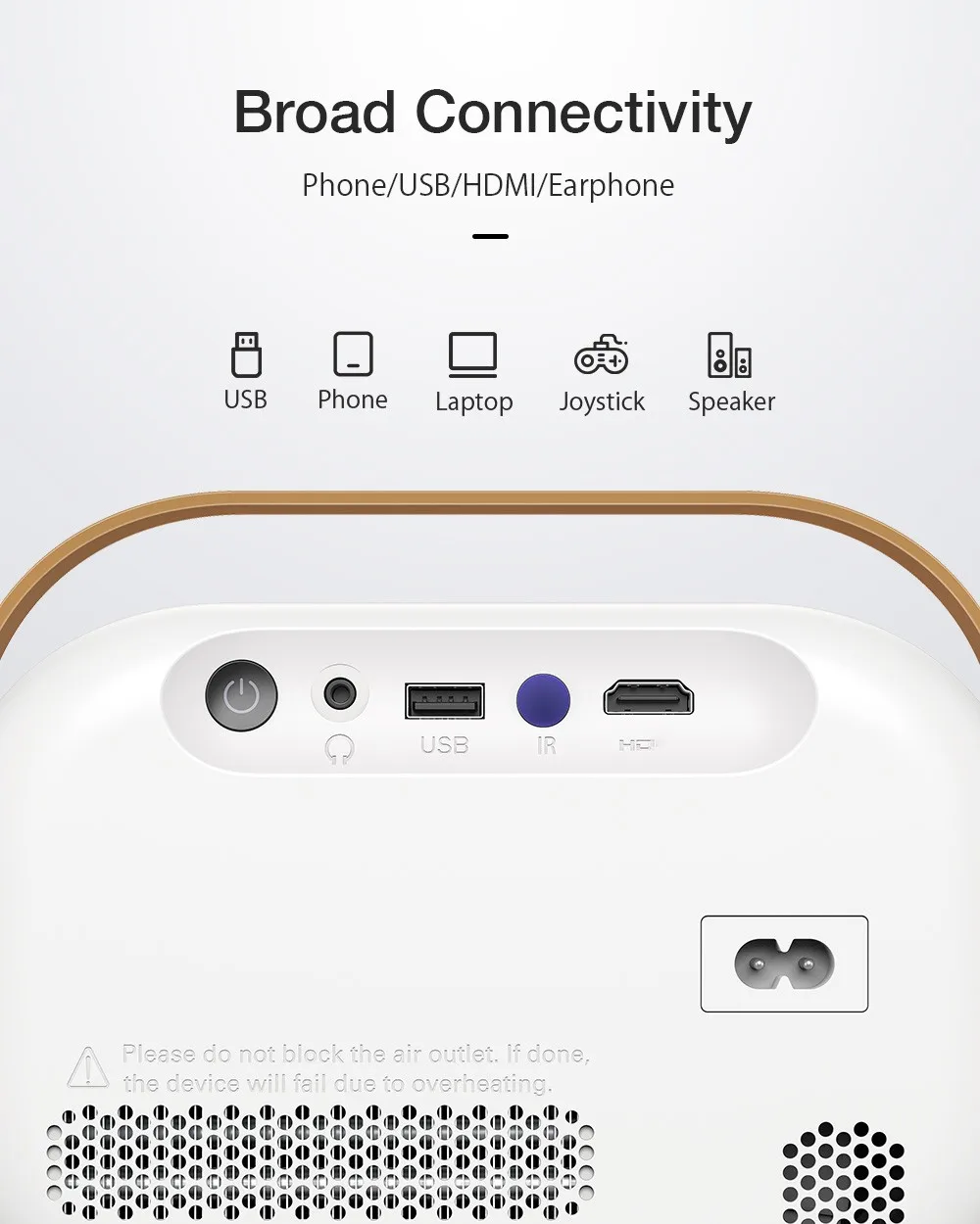 Corrección trapezoidal automática hacia arriba y hacia abajo ± 40 °, admite Función de Proyección lateral manual