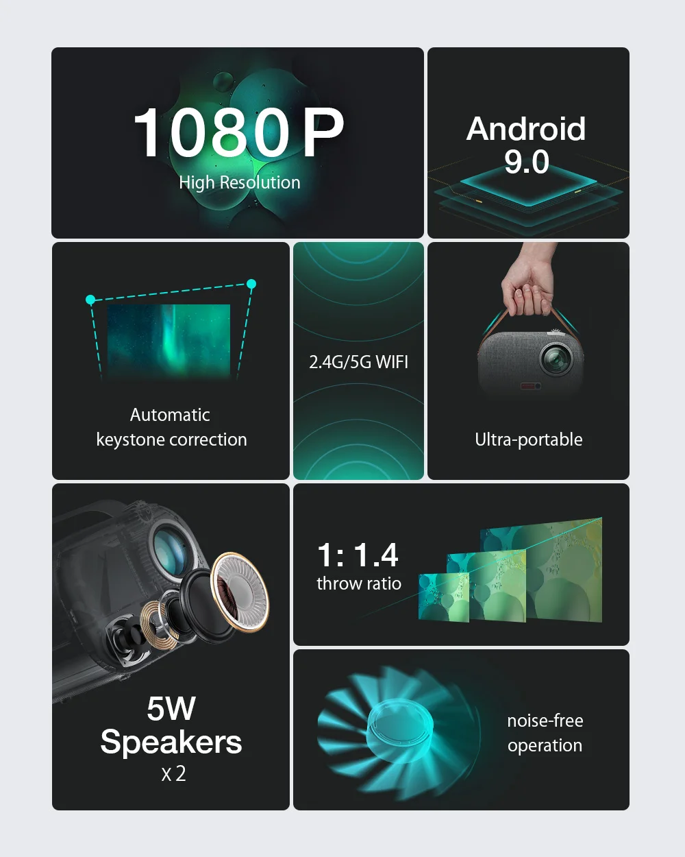 4. Corrección trapezoidal horizontal automática, Ajuste automático en un segundo, súper conveniente