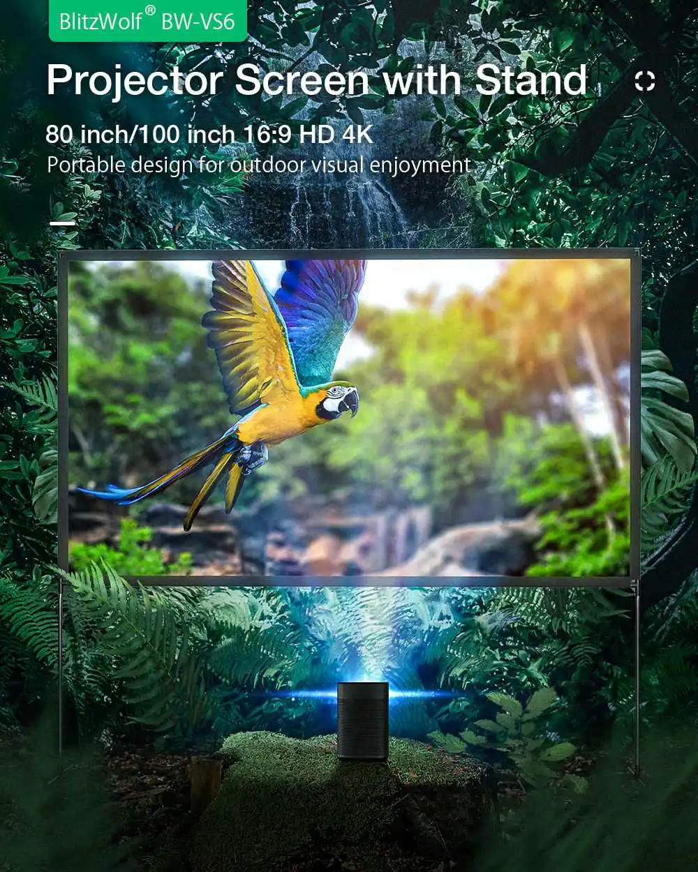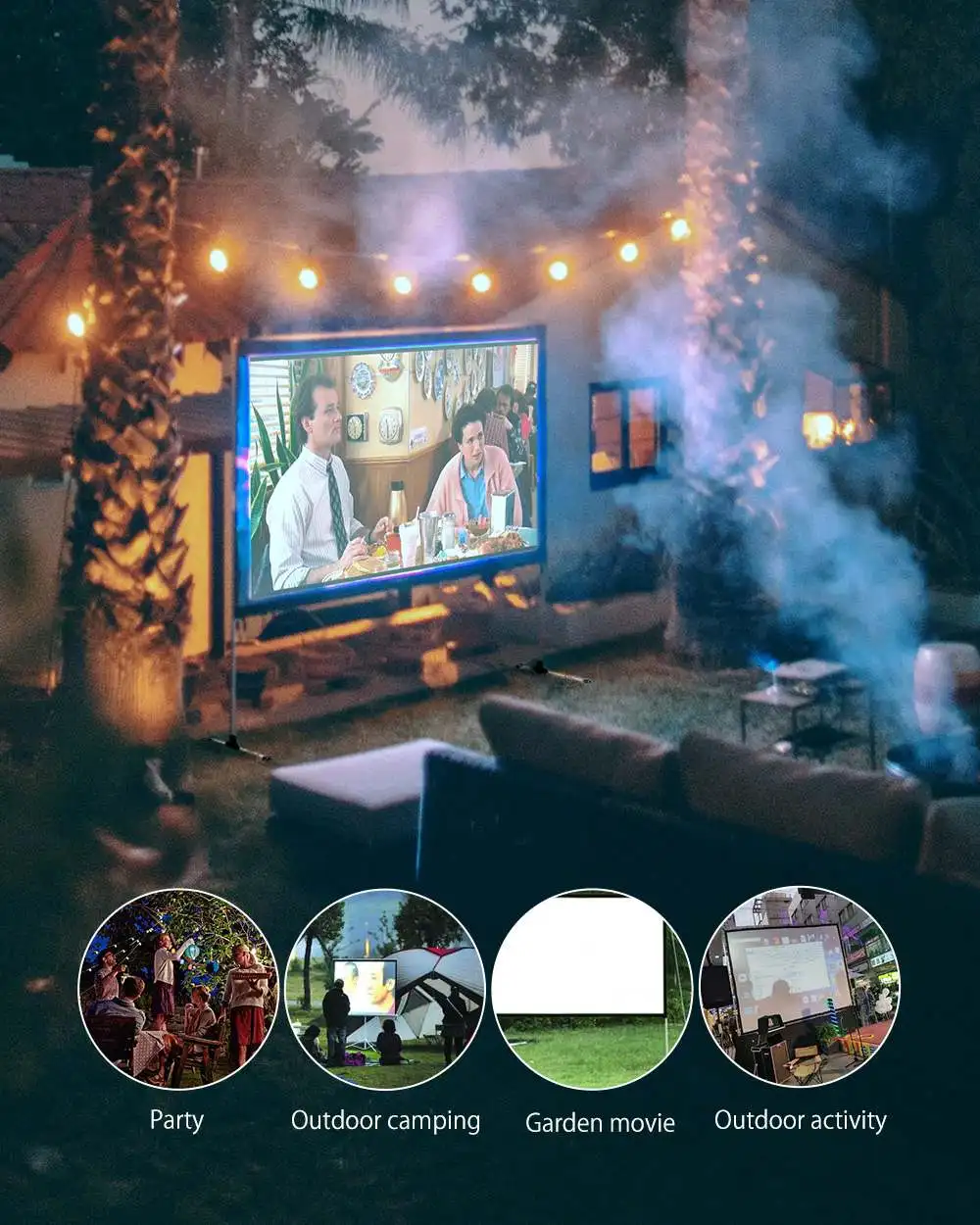 1. Pantalla de proyector con soporte de 100 pulgadas 16:9 HD 4K: diseño portátil para el disfrute visual al aire libre