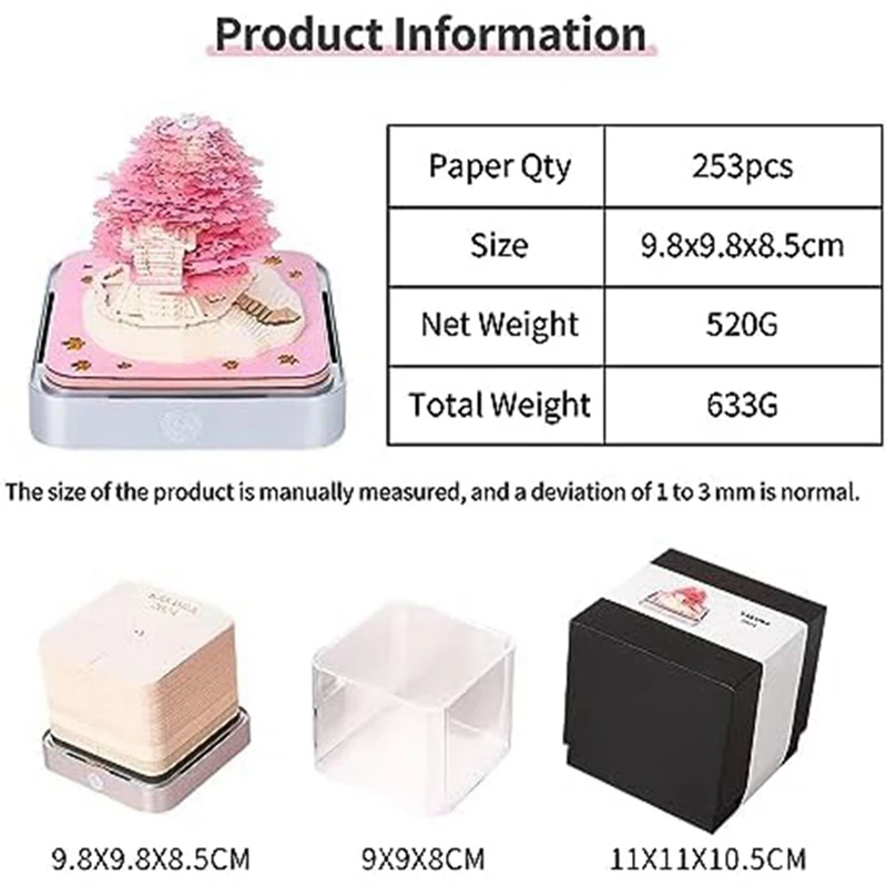 Comprar Bloc de notas 3D con luces, calendario de escritorio 2024, Sakura Tree, 3D Bloc de notas, grabado Artopad, calendario de escritorio de artista