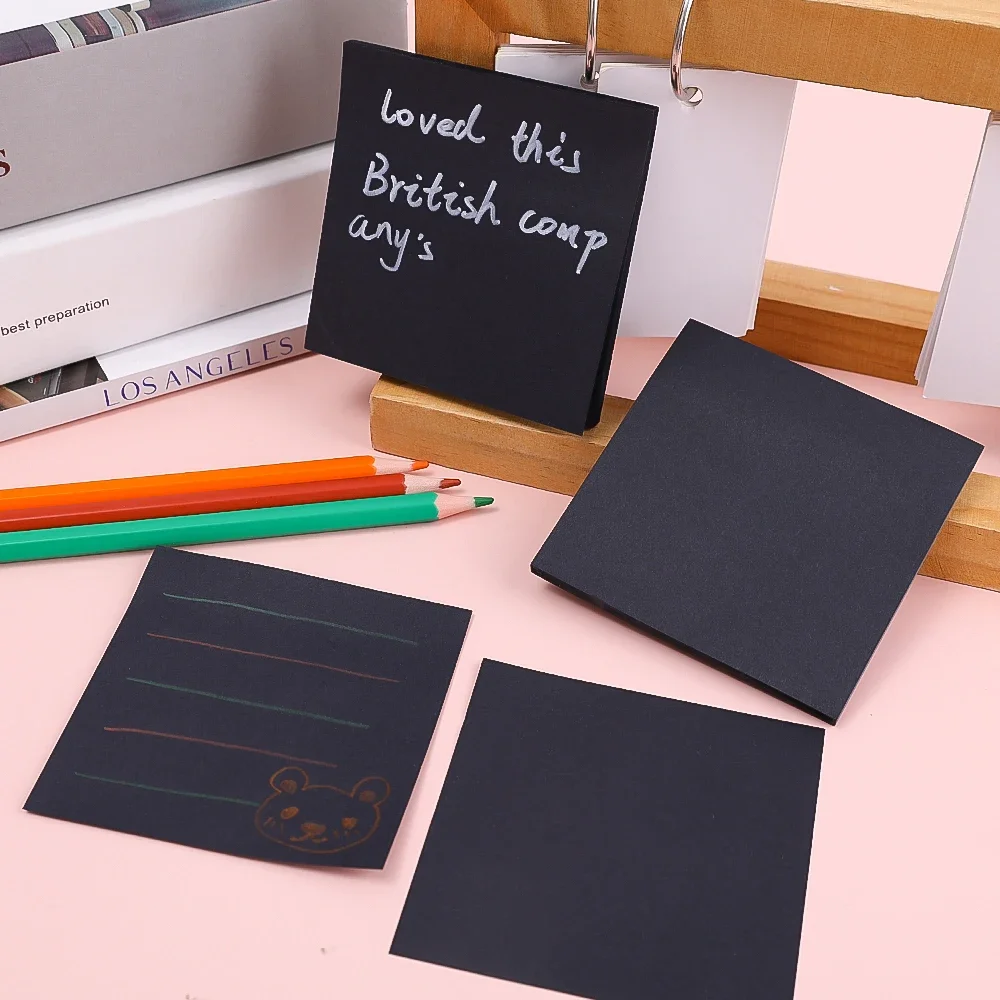 Comprar Bloc de notas adhesivas negras, Bloc de notas, suministros escolares de oficina, papelería, cuaderno, decoración, planificador