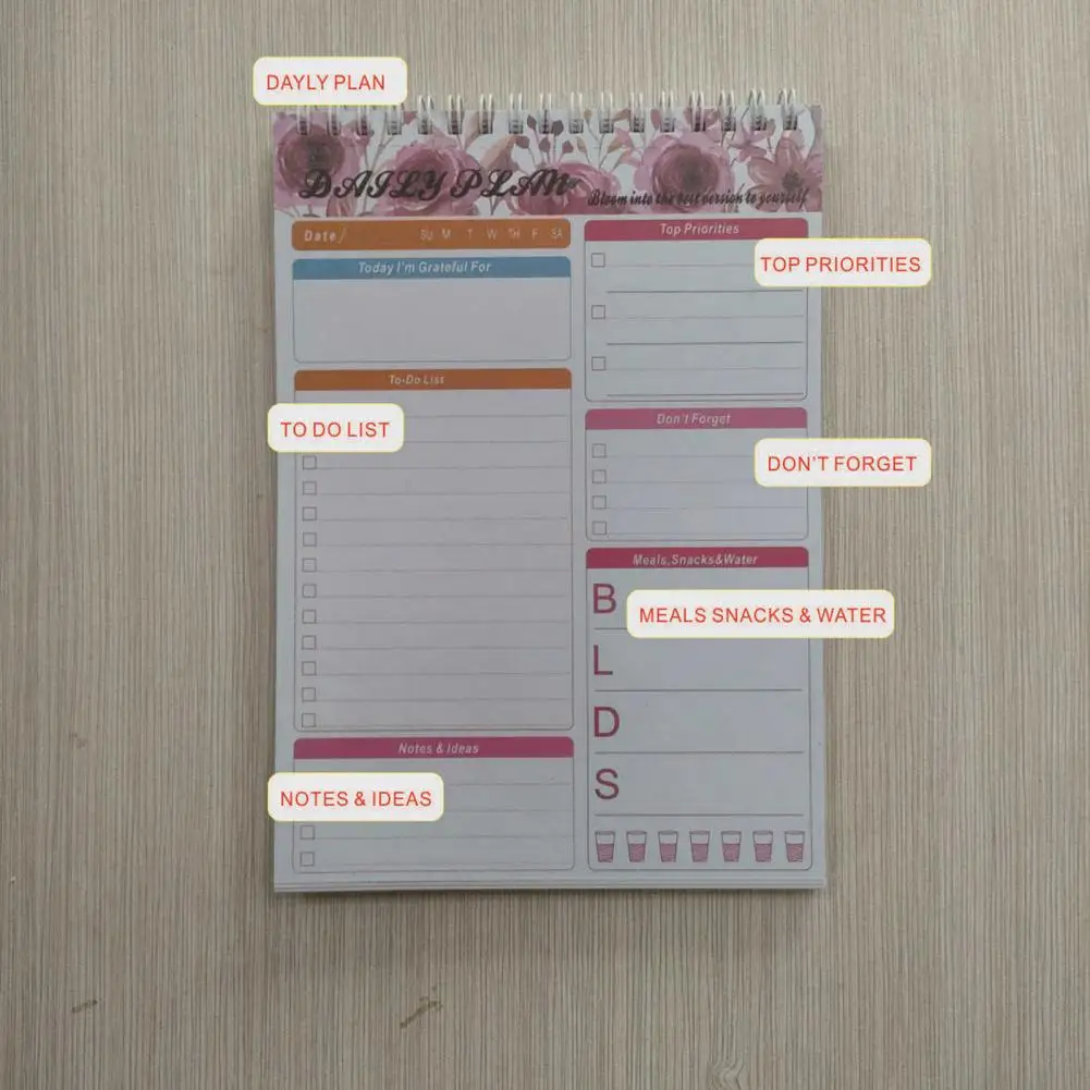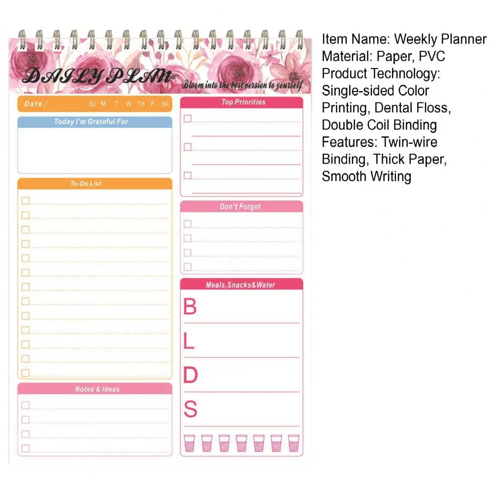 Bloc de notas duradero, planificador semanal de papel grueso con encuadernación de doble alambre, organizador de horario eficiente, diario, Bloc de notas de oficina semanal