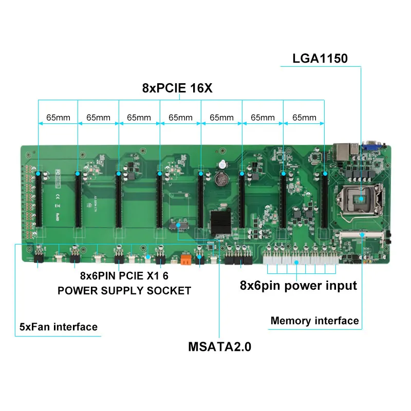 B85 BTC 8 GPU tarjeta ATX placa base minería placa LGA 1150 ETH 65mm placa base para marco de plataforma de minería