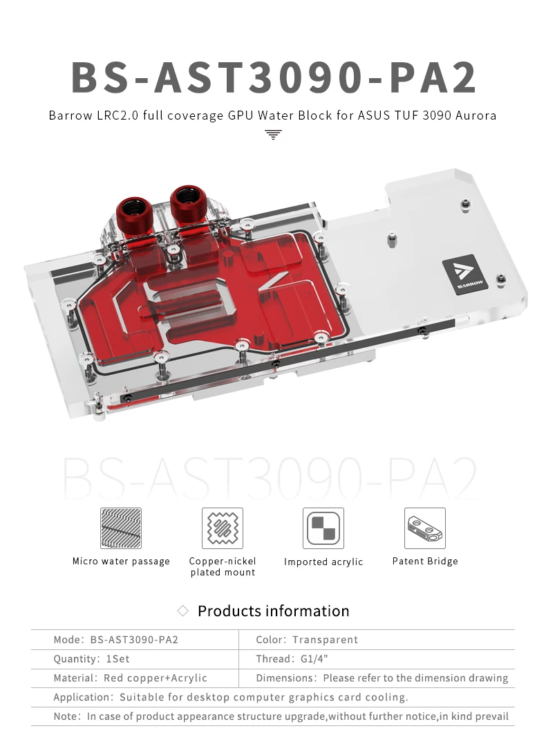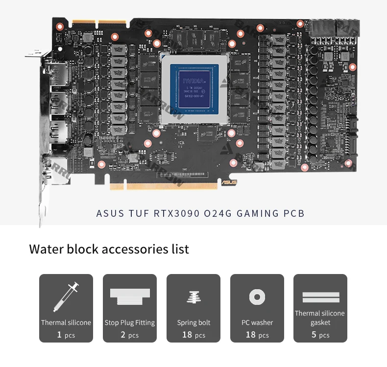 Comprar Bloque de agua Barrow GPU para ASUS TUF RTX 3090 3080 GAMING, GPU de cubierta completa enfriador de agua, placa trasera refrigerada por agua, BS-AST3090-PA2