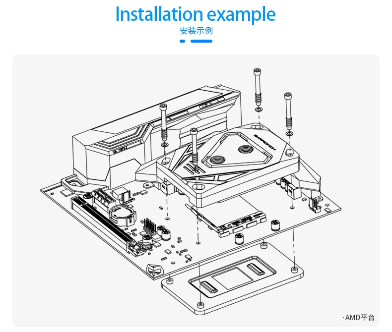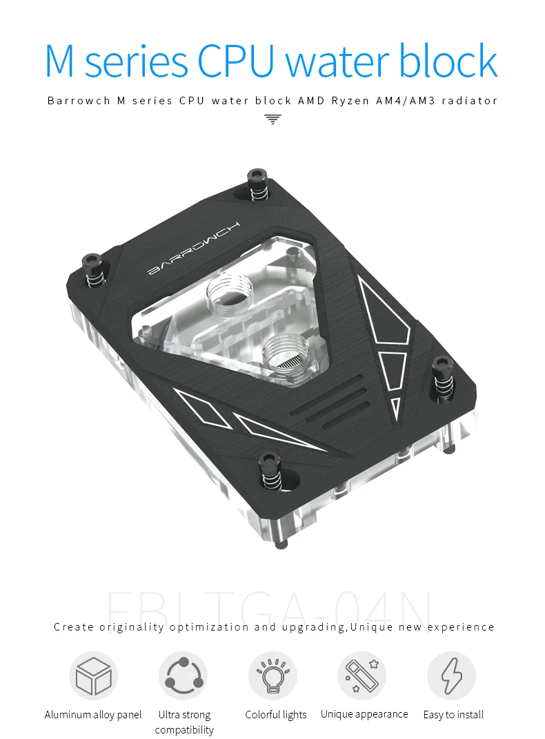 Bloque de agua de CPU Barrowch, para radiador de plataforma AMD Ryzen AM4/AM3