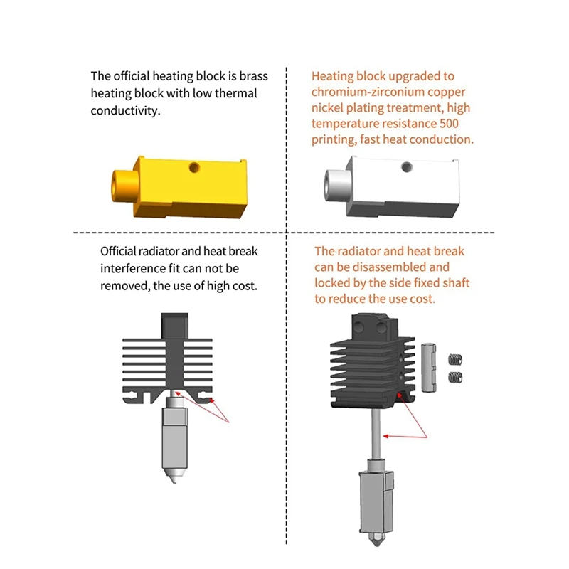 Bloque calefactor Hotend de alta temperatura de hasta 500 ℃, versión niquelada de cobre y circonio cromado para impresora 3D P1P