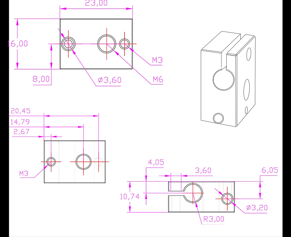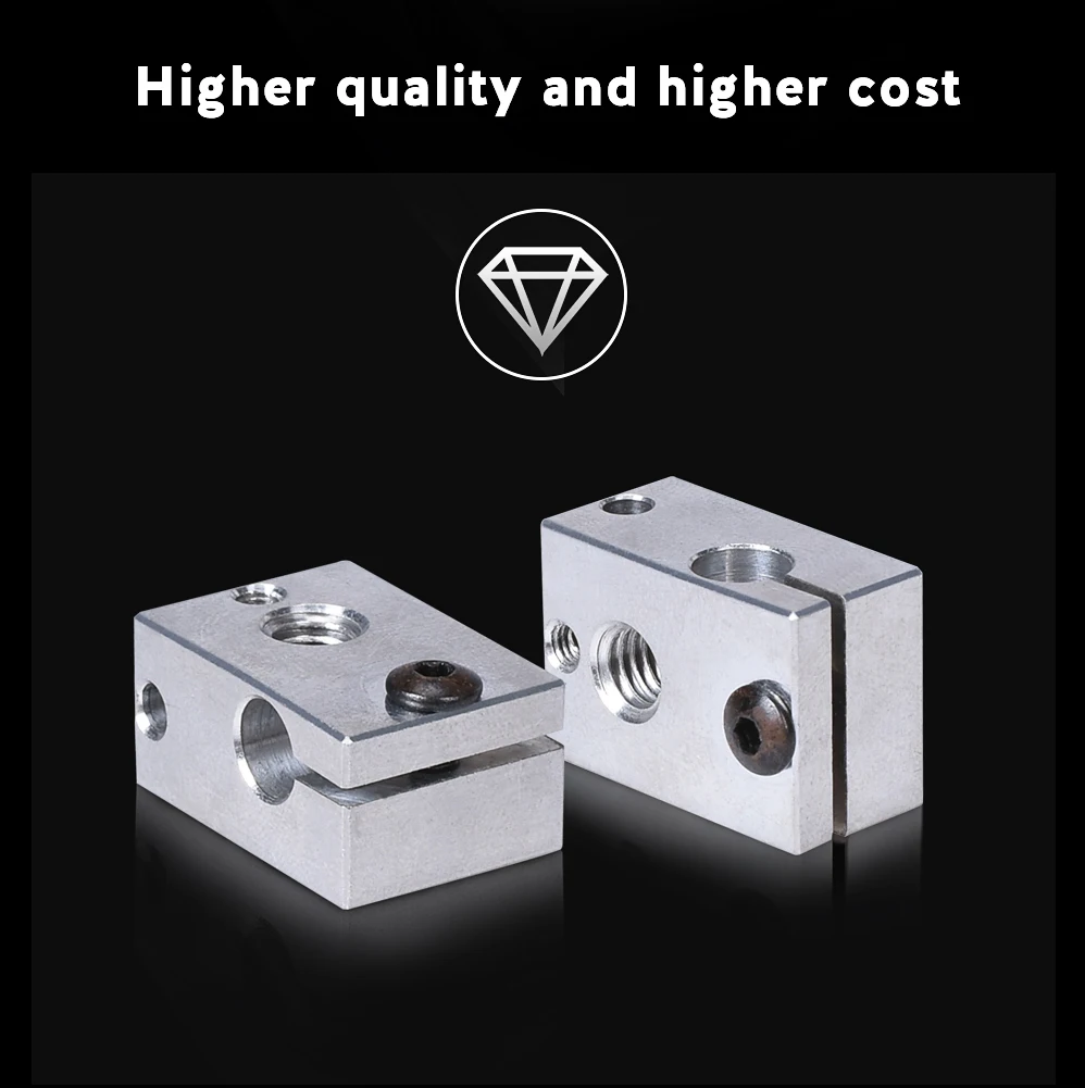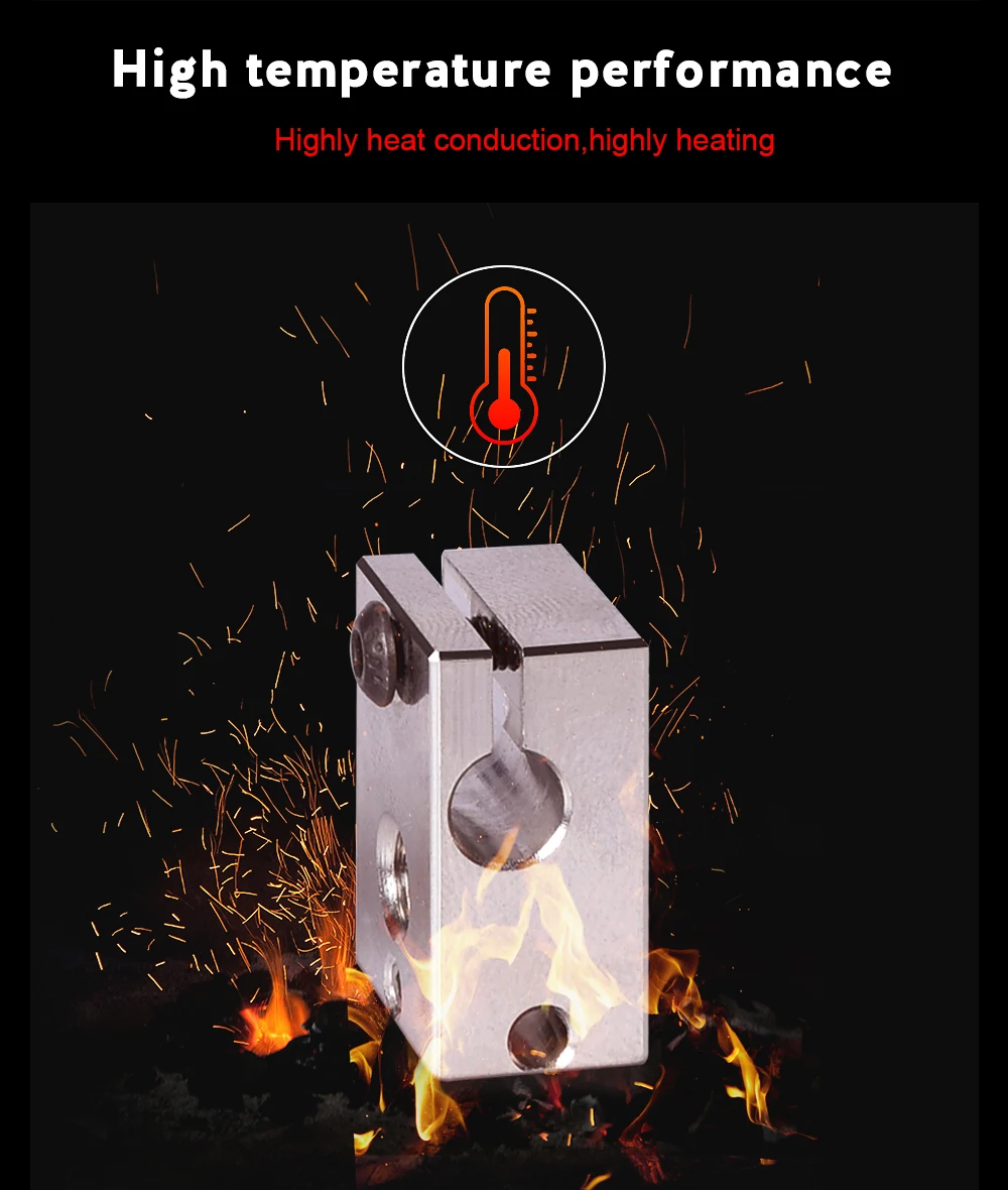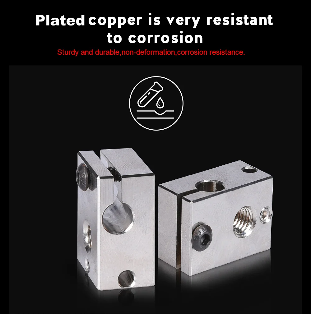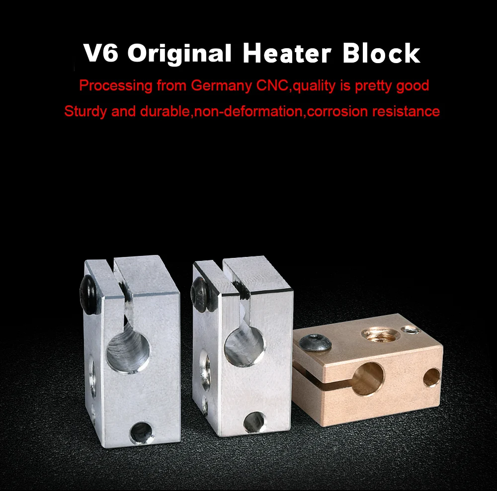 Bloque calefactor V6 de alta calidad, piezas de impresora 3D PT100, latón de cobre chapado, bloque de calor para extrusora E3D V6 Hotend DDB Titan