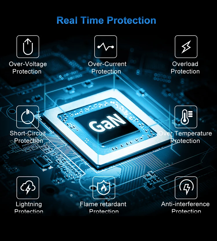 【Cargador basado en GaN】 La tecnología GaN no solo reduce el tamaño y el peso del cargador del portátil, sino que también genera menos calor, reduce el consumo de energía de manera efectiva y mejora la eficiencia de carga en gran medida, hace que la carga sea más segura y conveniente. Alimentado por la tecnología GaN II: con un aumento del 100% en la frecuencia de funcionamiento, un diseño apilado innovador y una estructura de placa de circuito mejorada, la tecnología GaN II hace que nuestro último cargador sea más pequeño sin sacrificar una gota de energía.
