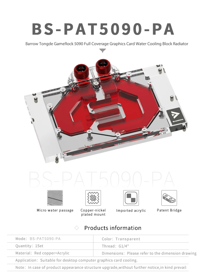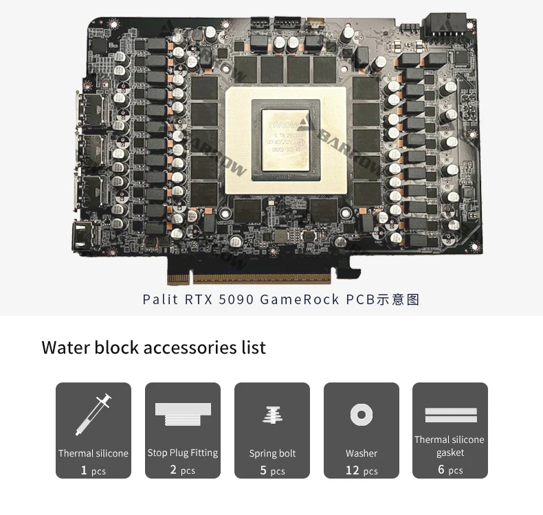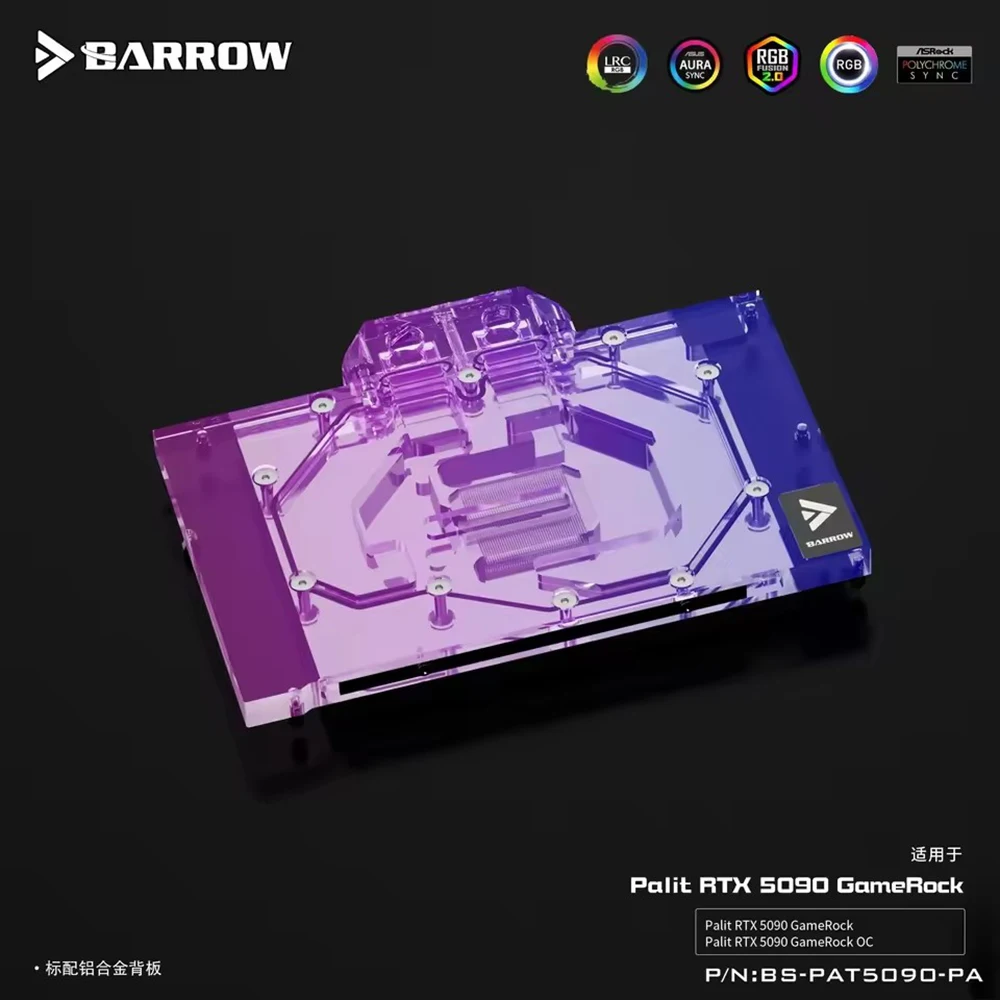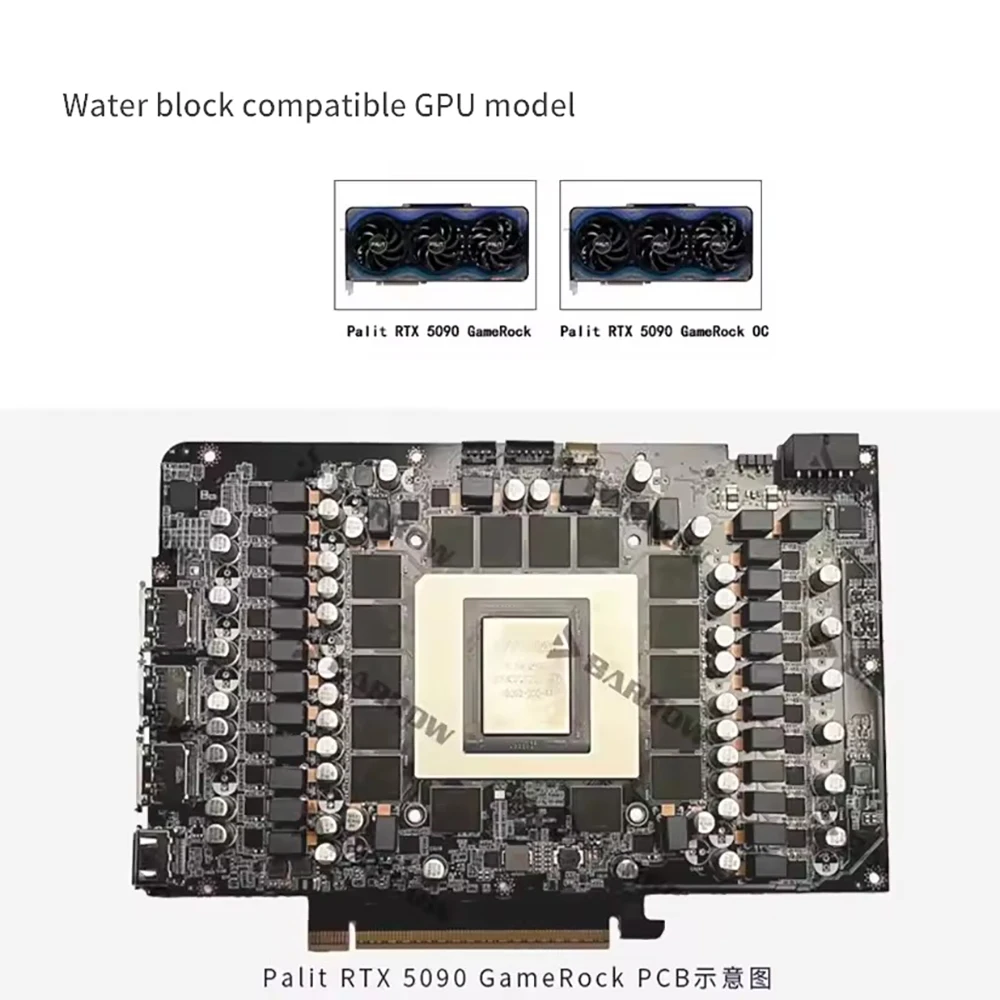 Comprar Bloque GPU Barrow para Palit RTX 5090 GameRock OC, enfriador de agua de tarjeta gráfica, radiador de refrigeración por agua, BS-PAT5090-PA