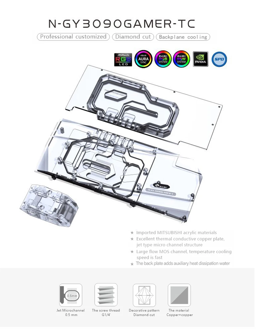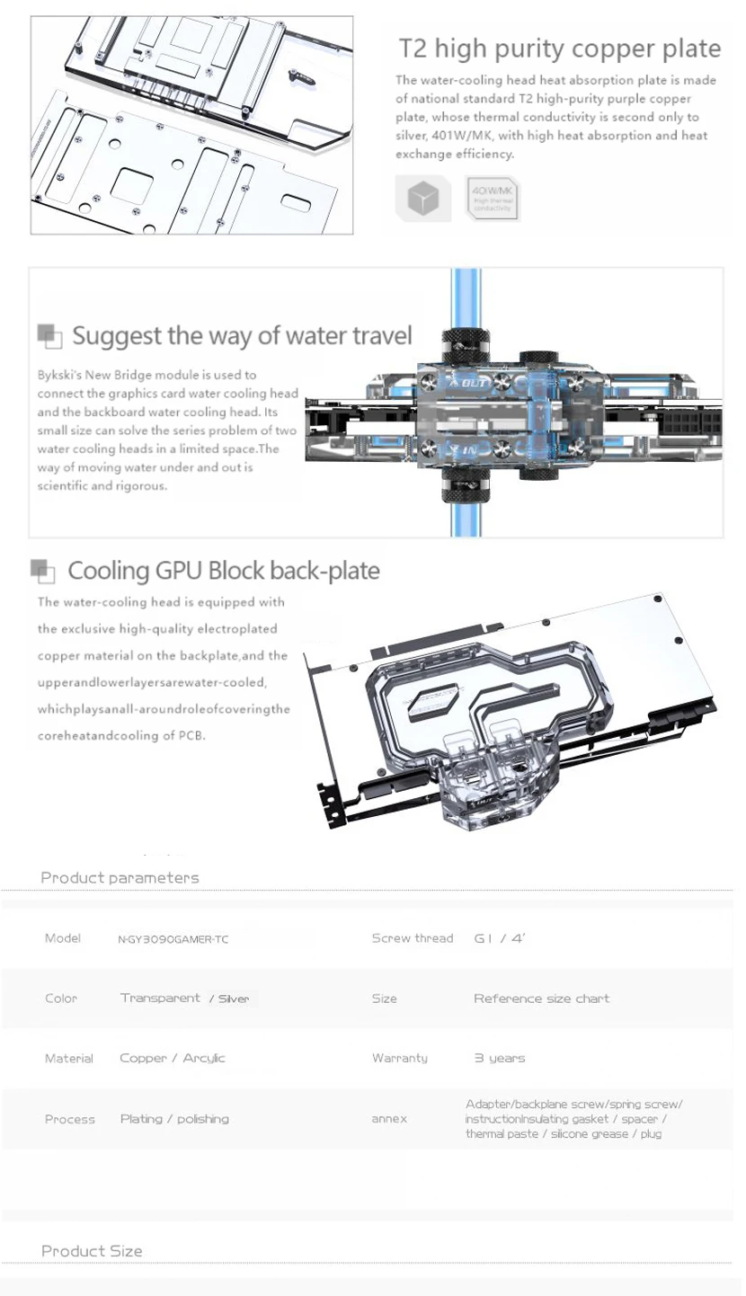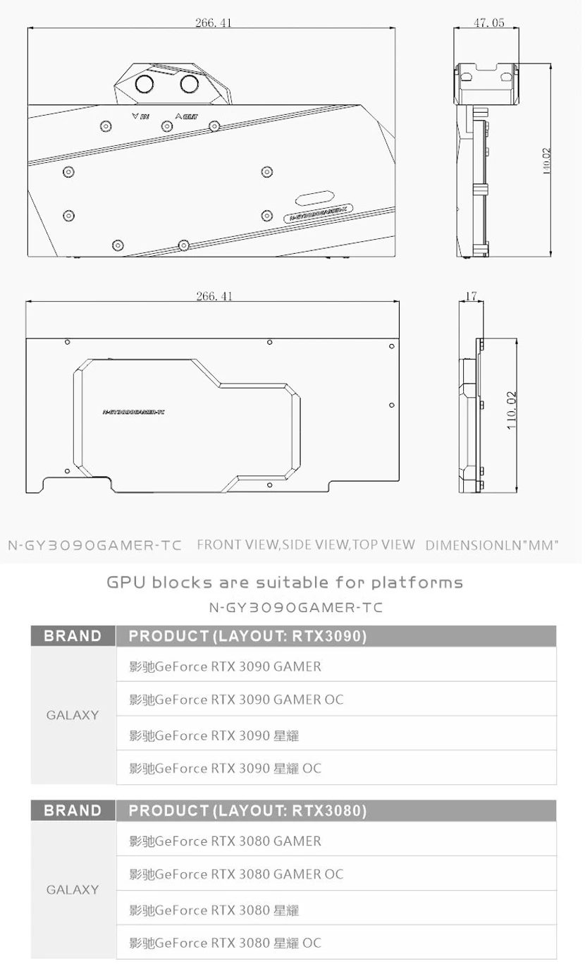 Comprar Bloque GPU Bykski con enfriador de placa trasera de canal activo doble para GALAX RTX 3080 3090 Gamer OC, memoria (VRAM) bloque de radiador VGA