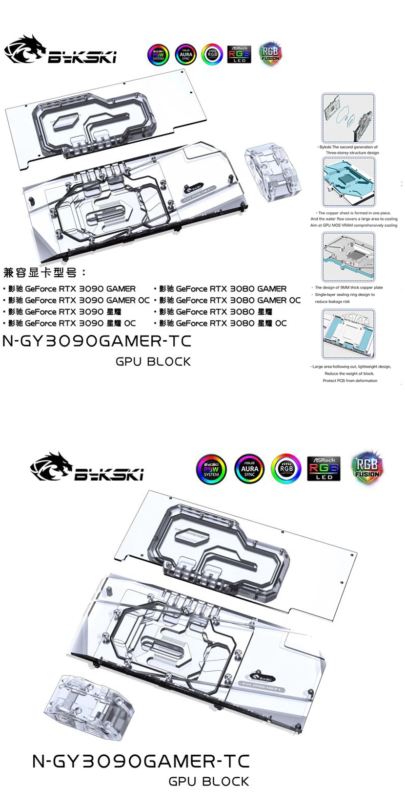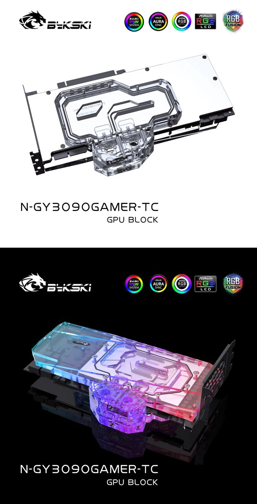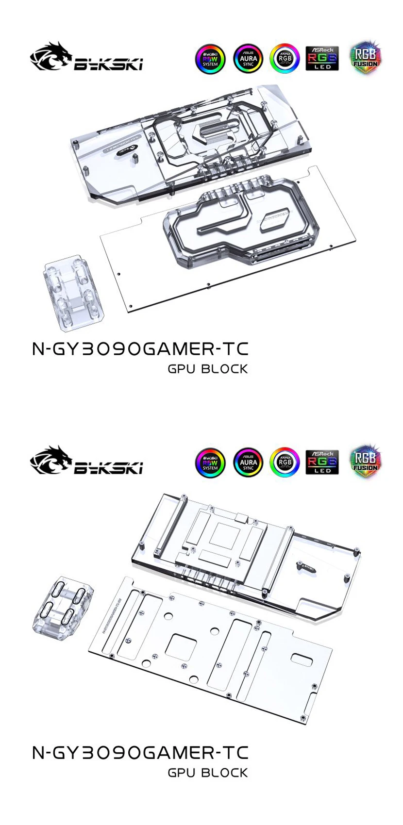 Comprar Bloque GPU Bykski con enfriador de placa trasera de canal activo doble para GALAX RTX 3080 3090 Gamer OC, memoria (VRAM) bloque de radiador VGA
