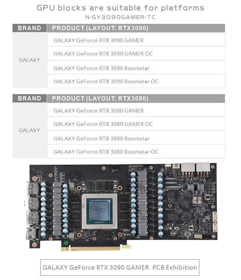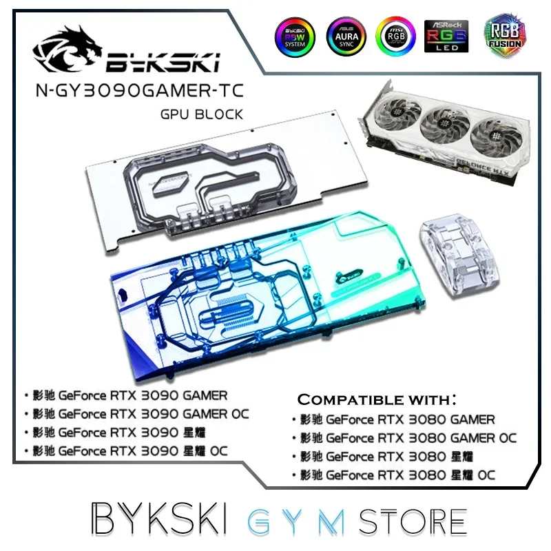 Comprar Bloque GPU Bykski con enfriador de placa trasera de canal activo doble para GALAX RTX 3080 3090 Gamer OC, memoria (VRAM) bloque de radiador VGA