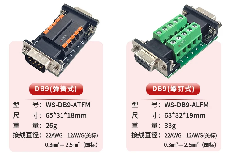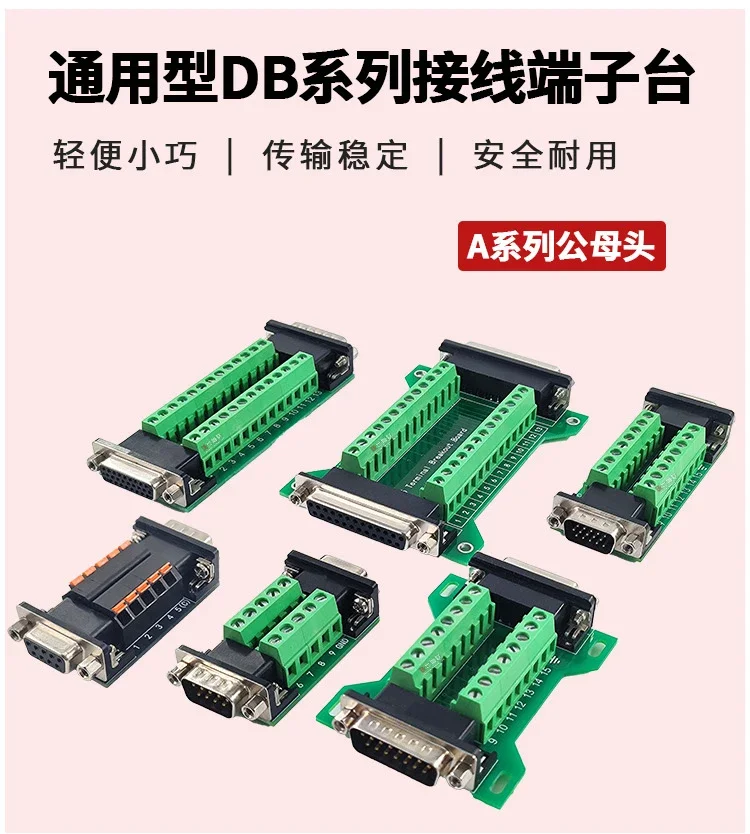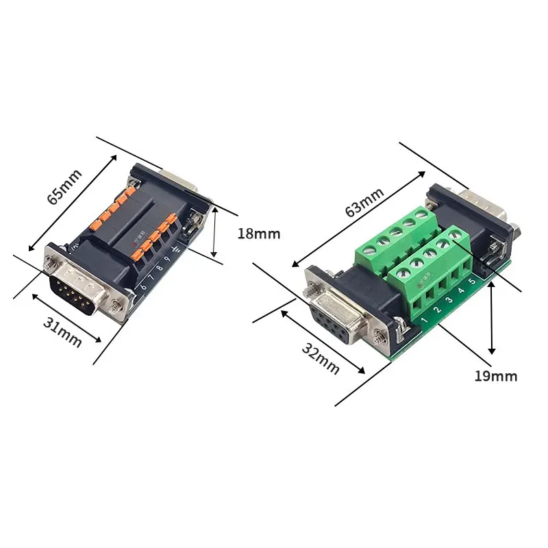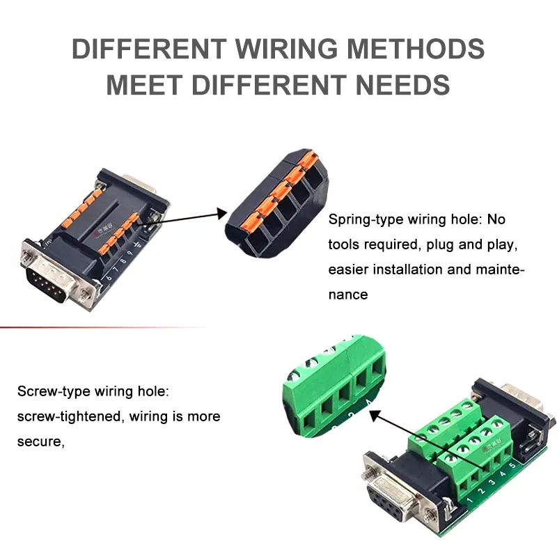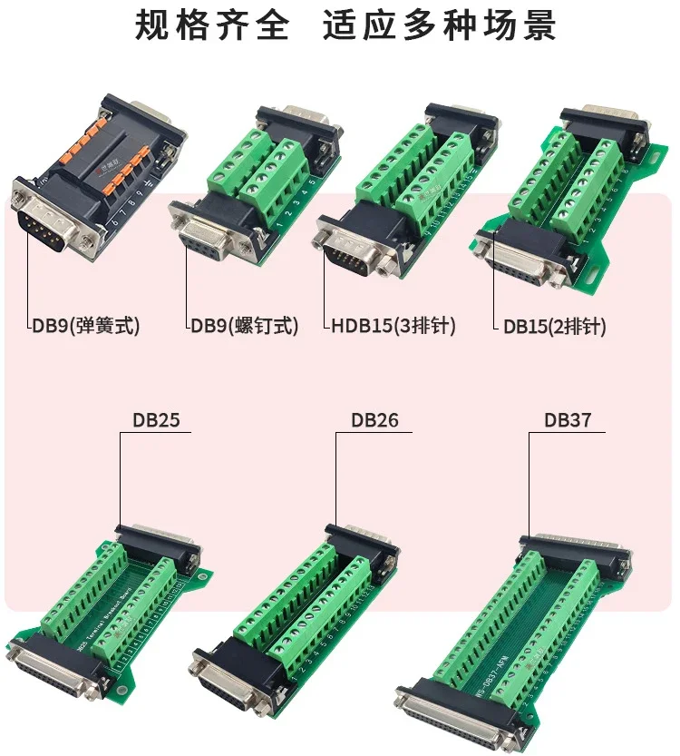 Bloque de terminales DB9/15/25/26/37, placa adaptadora macho a hembra de 9-37 pines, tornillo de relé/tipo de resorte, sin soldadura, tablero de señal de doble cabezal