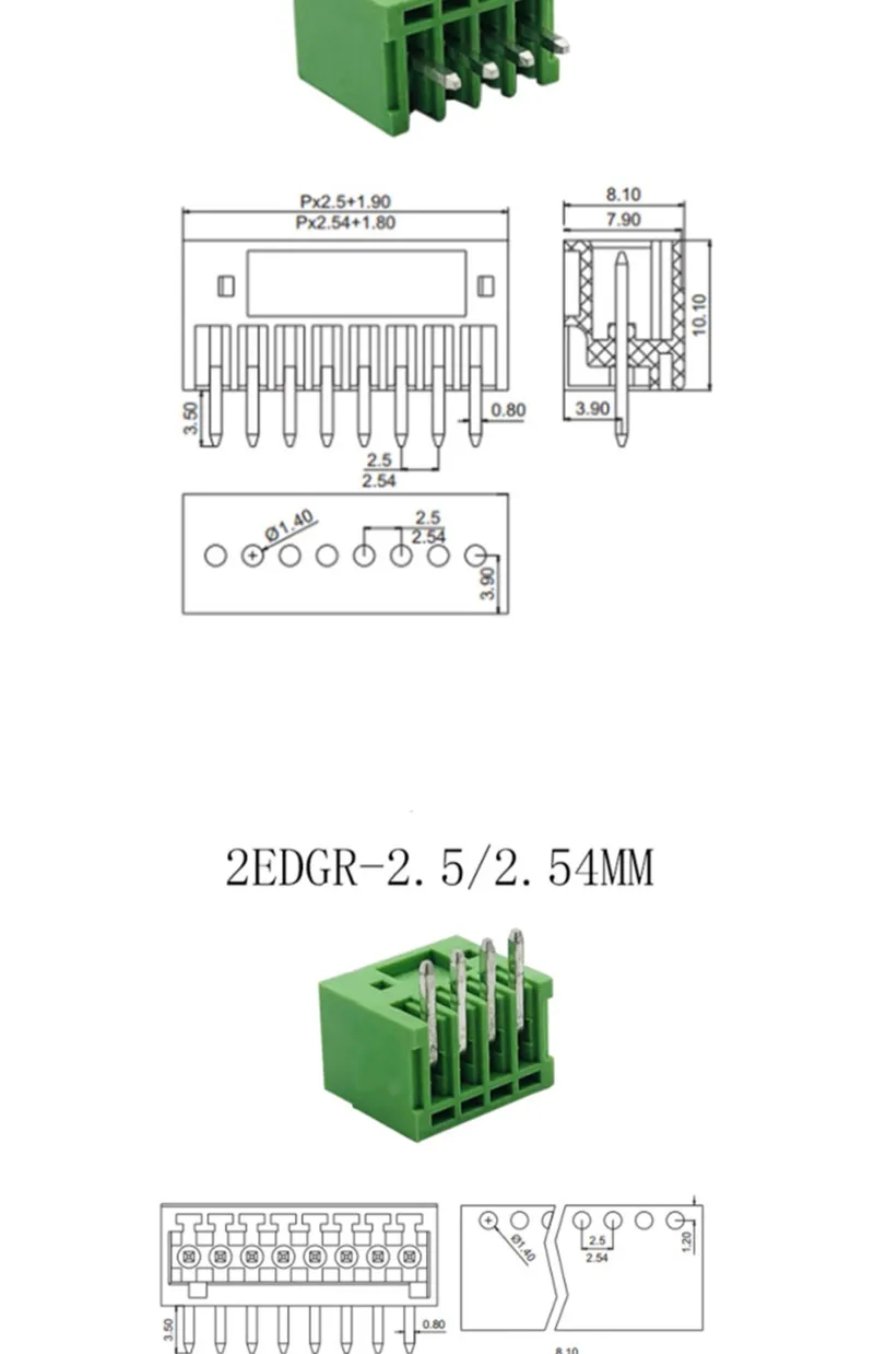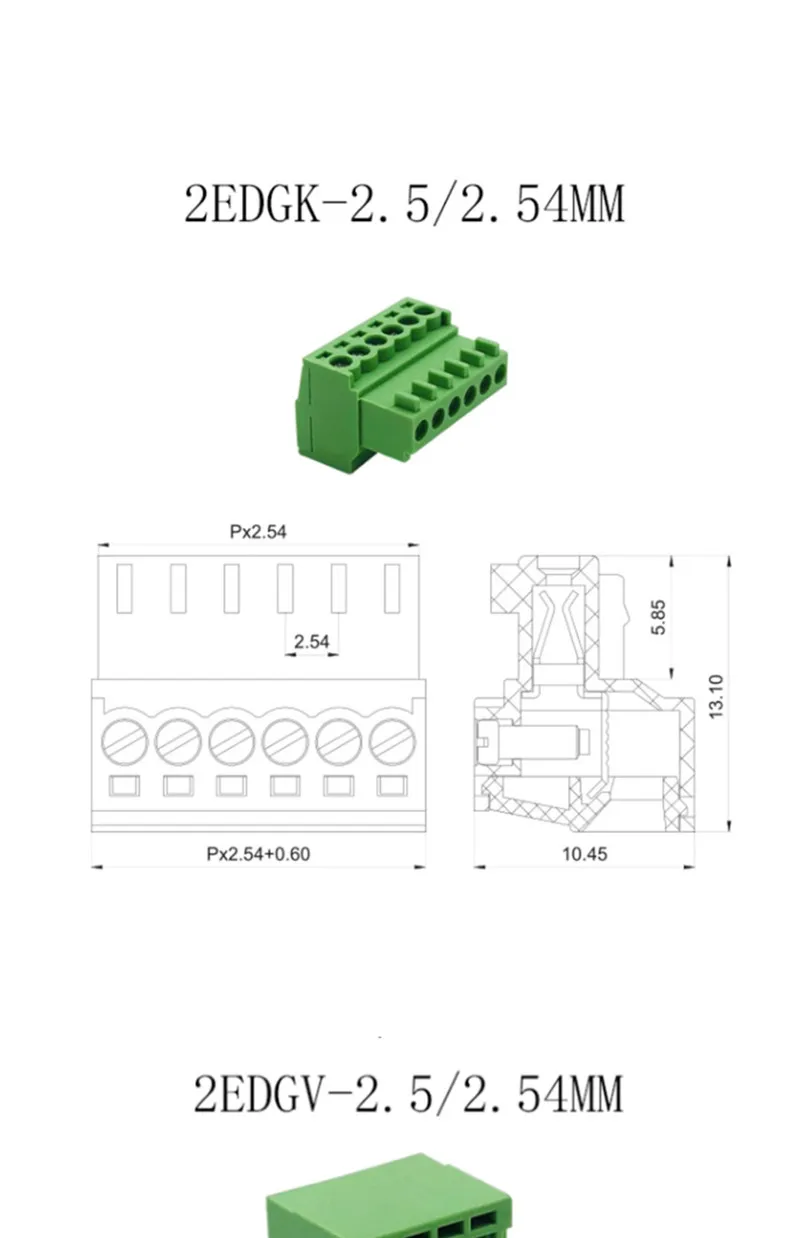 Comprar Bloque de terminales PCB enchufable de 2EDG-2,54mm con asiento de pasador doblado de pierna recta de paso pequeño 2P/3P/4P/5P/6P, 10 Uds.