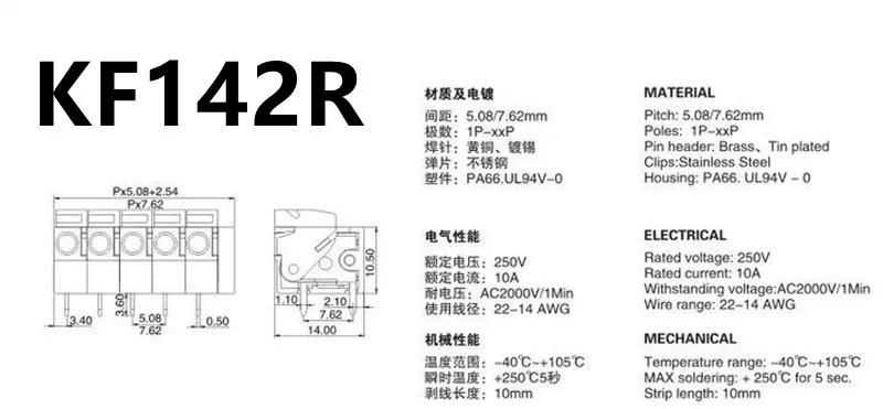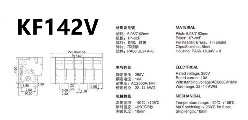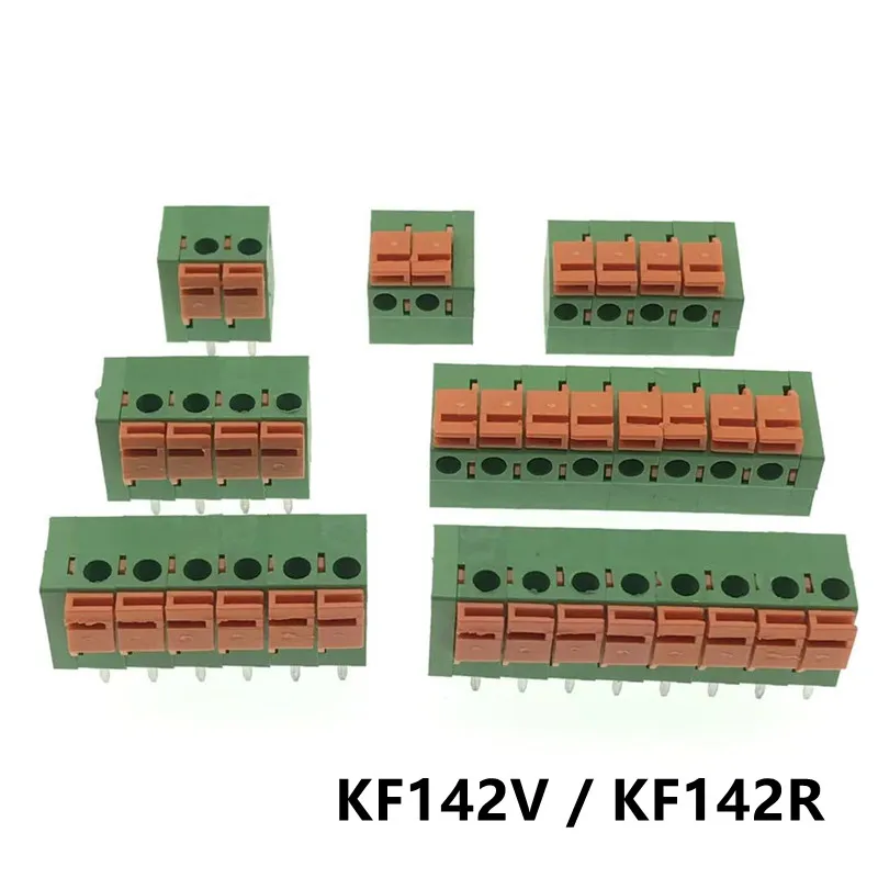 5 uds KF142V KF142R 5,08mm PCB bloque de terminales de resorte KF128-5.08 2P 3P4P 5P 6P 8P conector de terminales tornillo montado