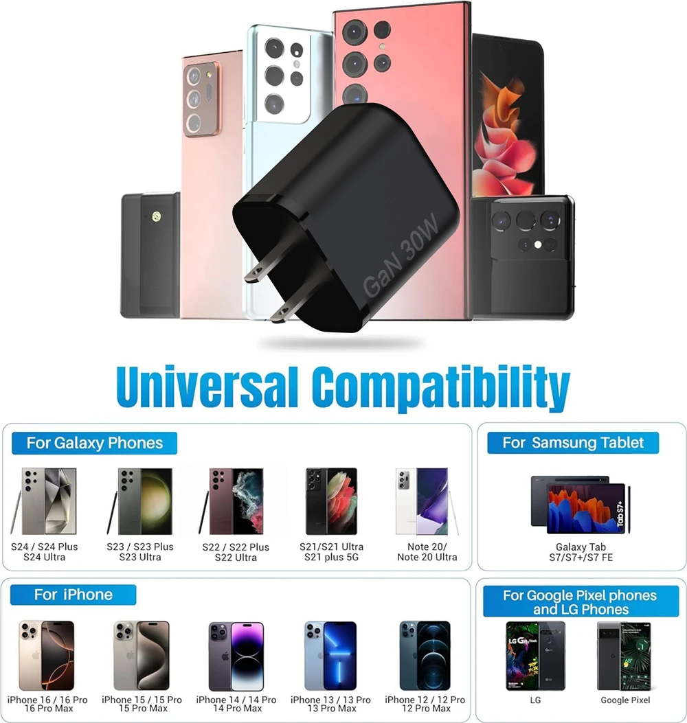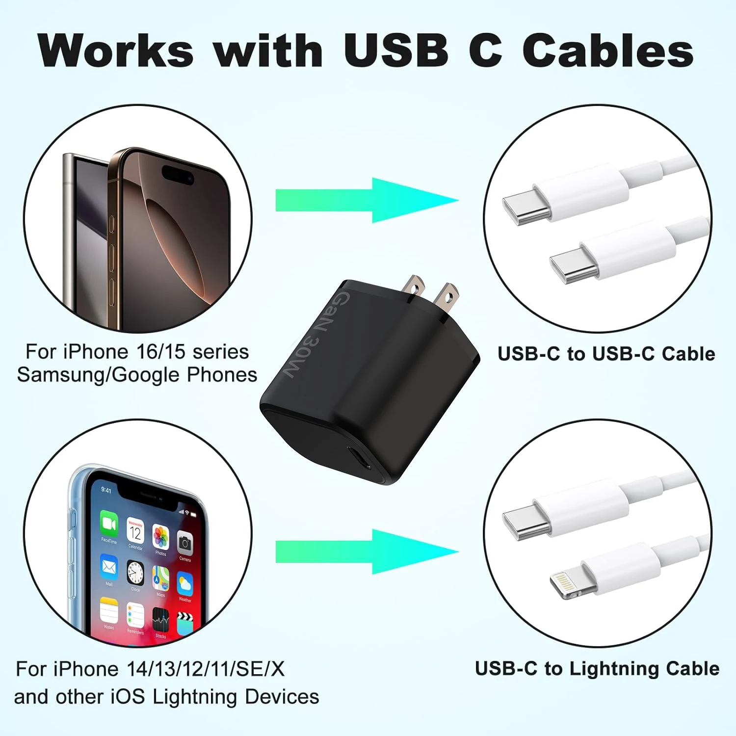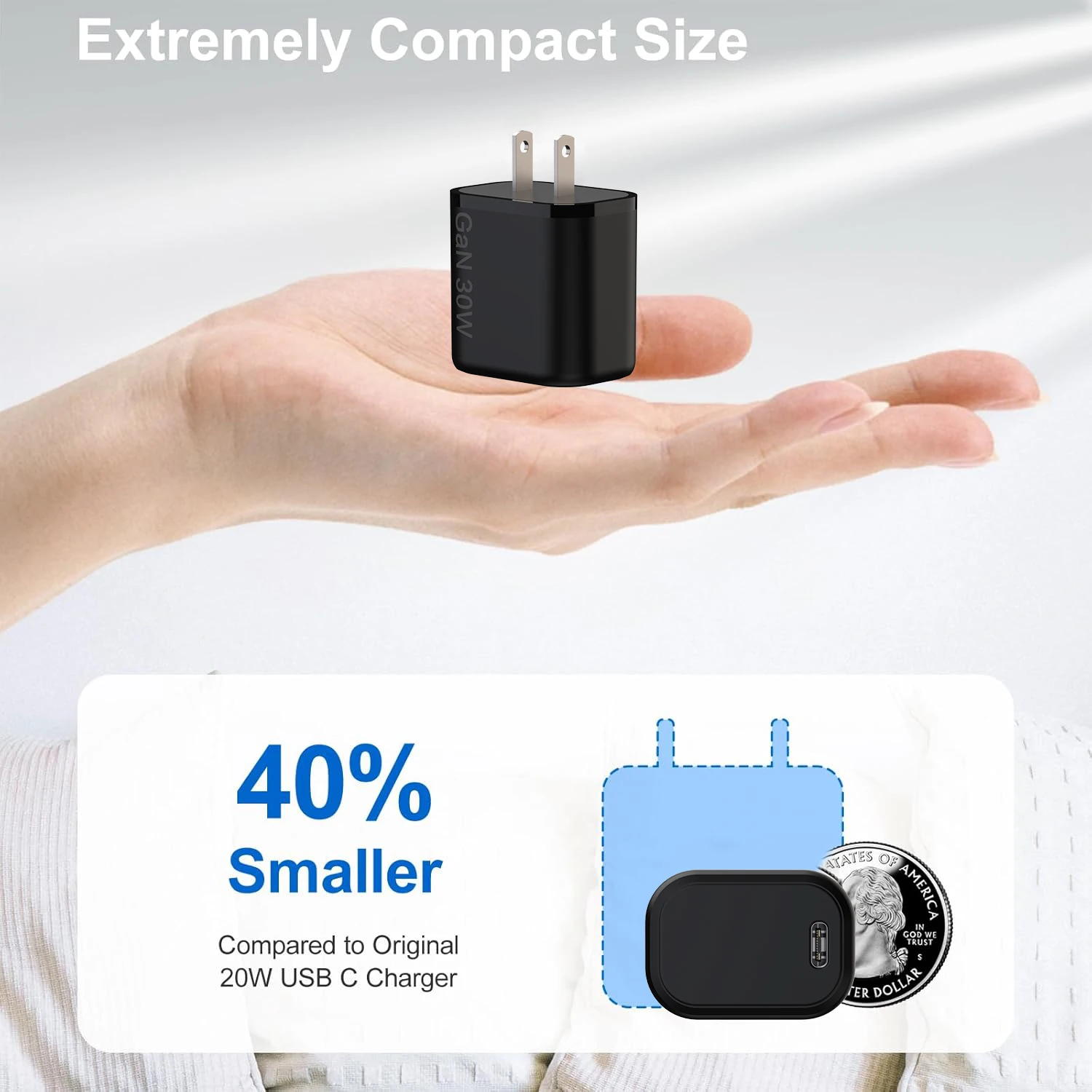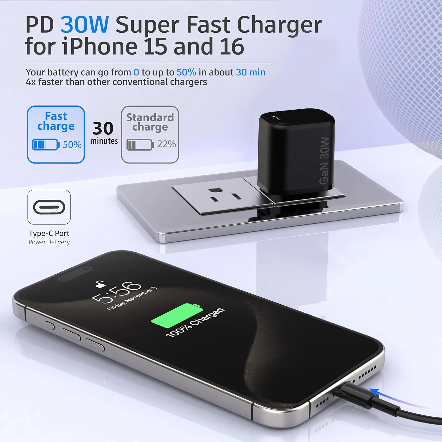 Comprar Bloque USB C 30W PD bloque de carga súper rápida tipo C enchufe adaptador de pared cargador rápido para iPhone 16/16 Plus/16 Pro/16 Pro Max/15