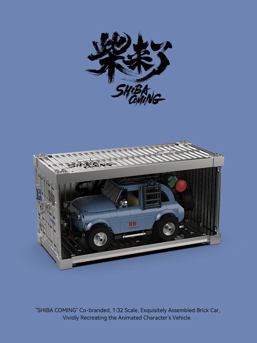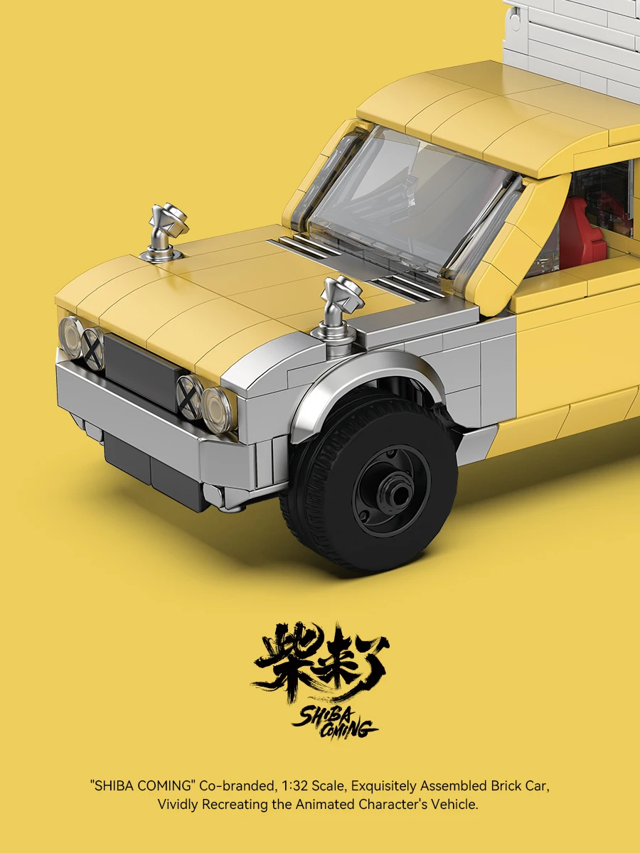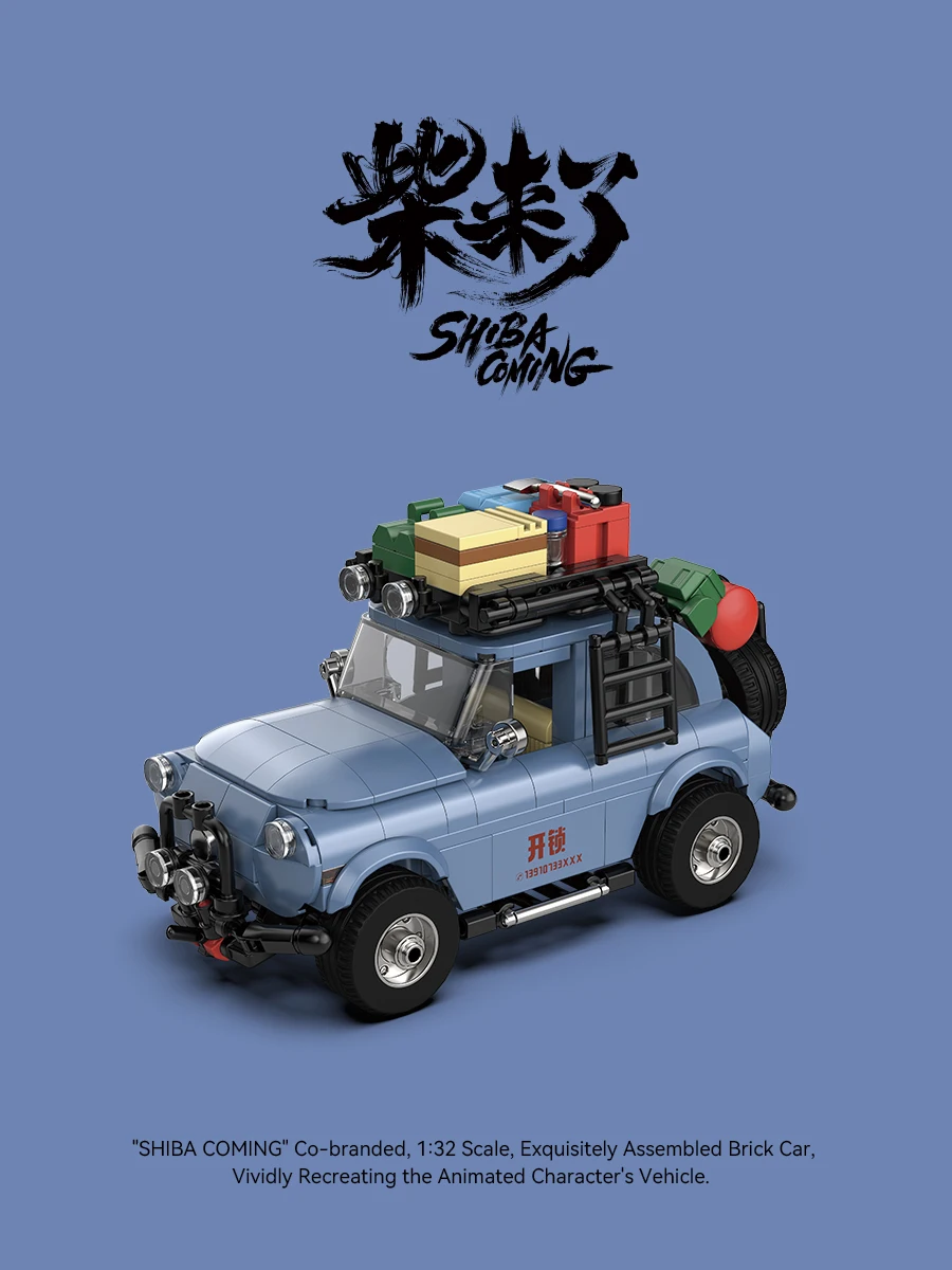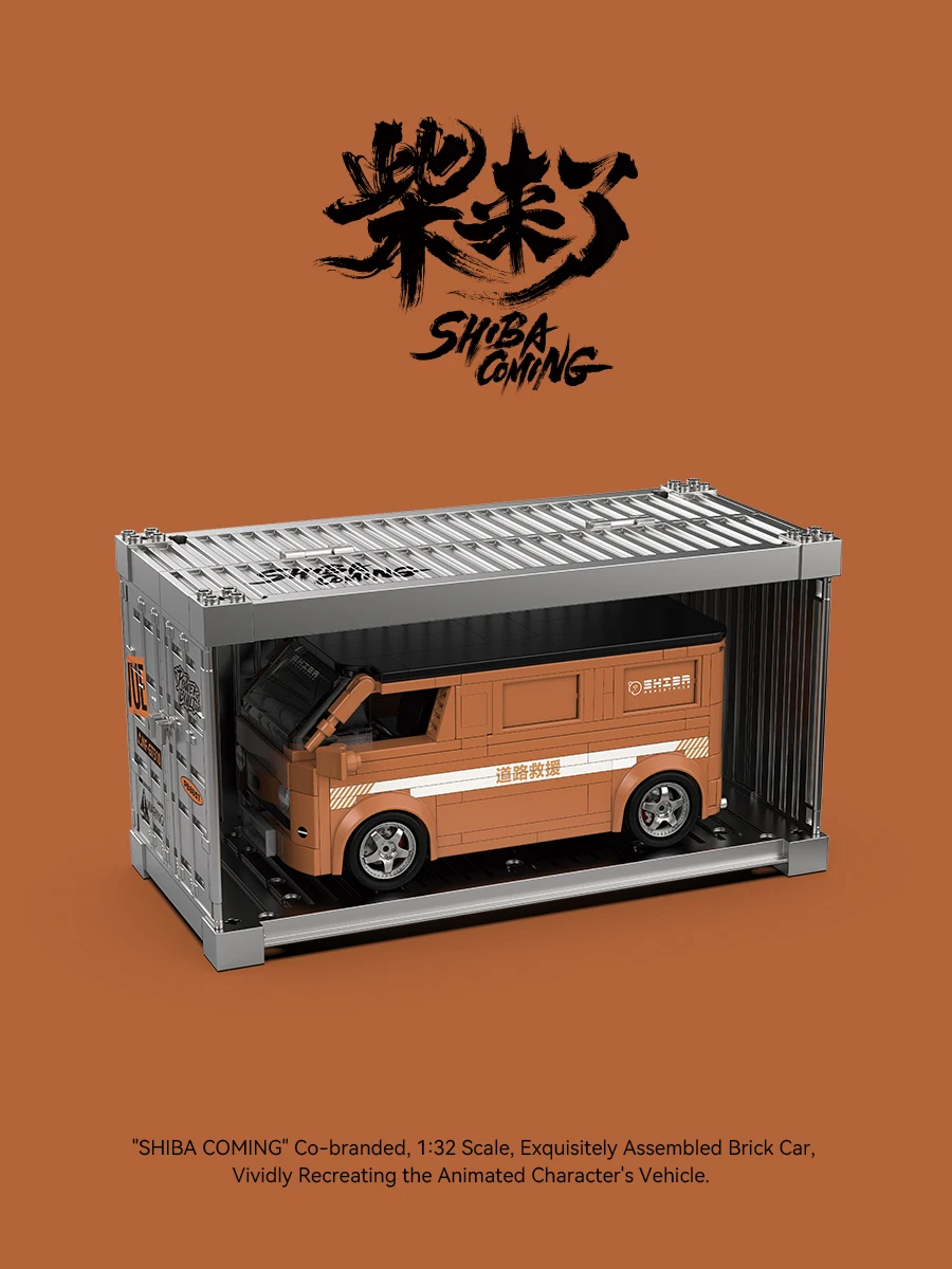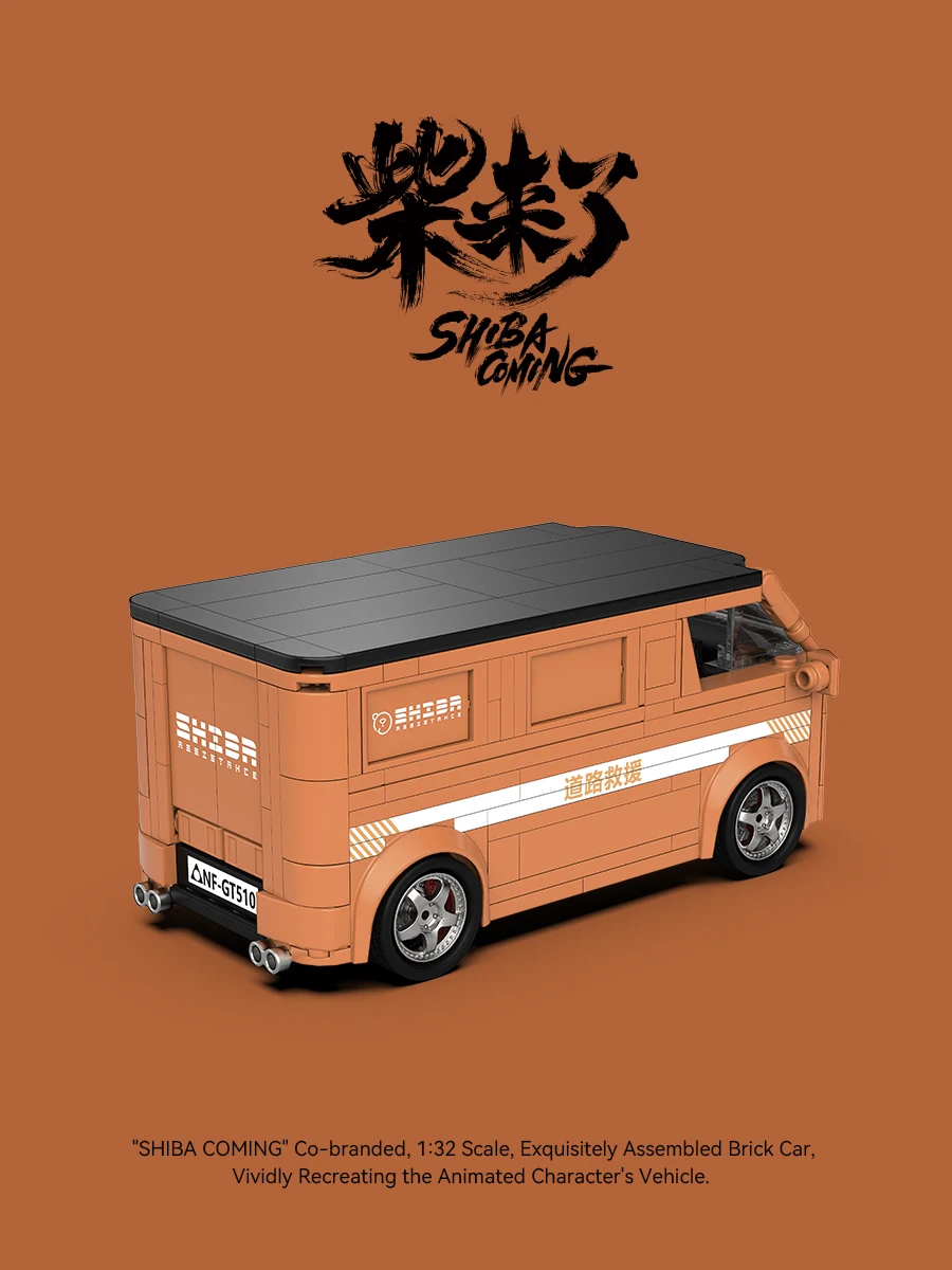 Bloques de construcción MOC serie PB, modelo de furgoneta SHIBA-COMING, escala 1:32, juego de coches de ladrillo ensamblados, vehículo de personajes animados, Juguetes DIY