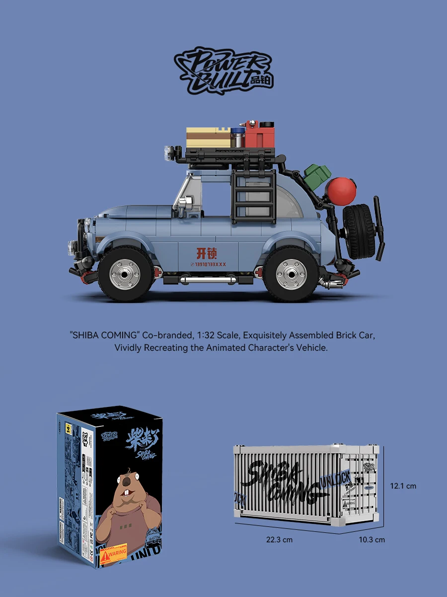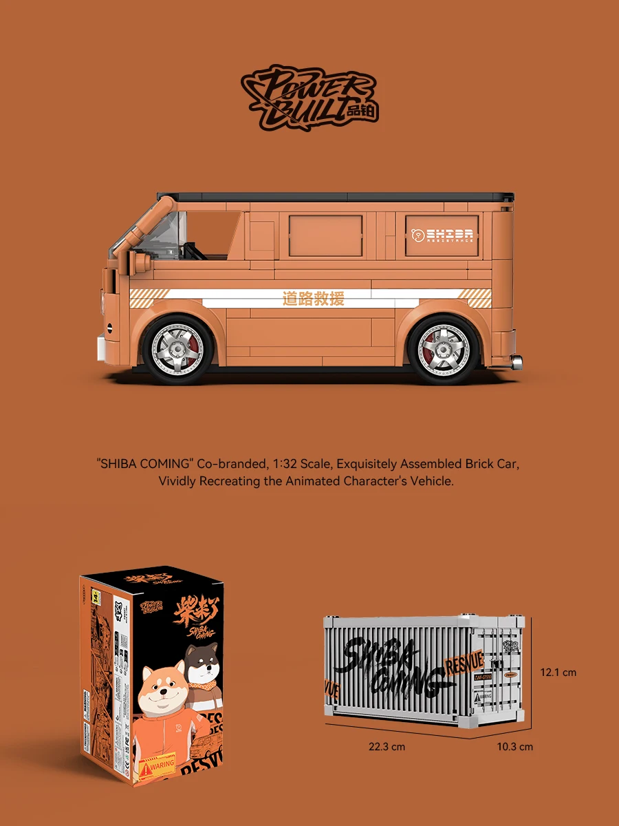 Serie PB MOC bloques de construcción modelo de furgoneta SHIBA-COMING escala 1:32 conjunto de coche de ladrillo ensamblado vehículo de personaje animado juguetes DIY regalos creativos