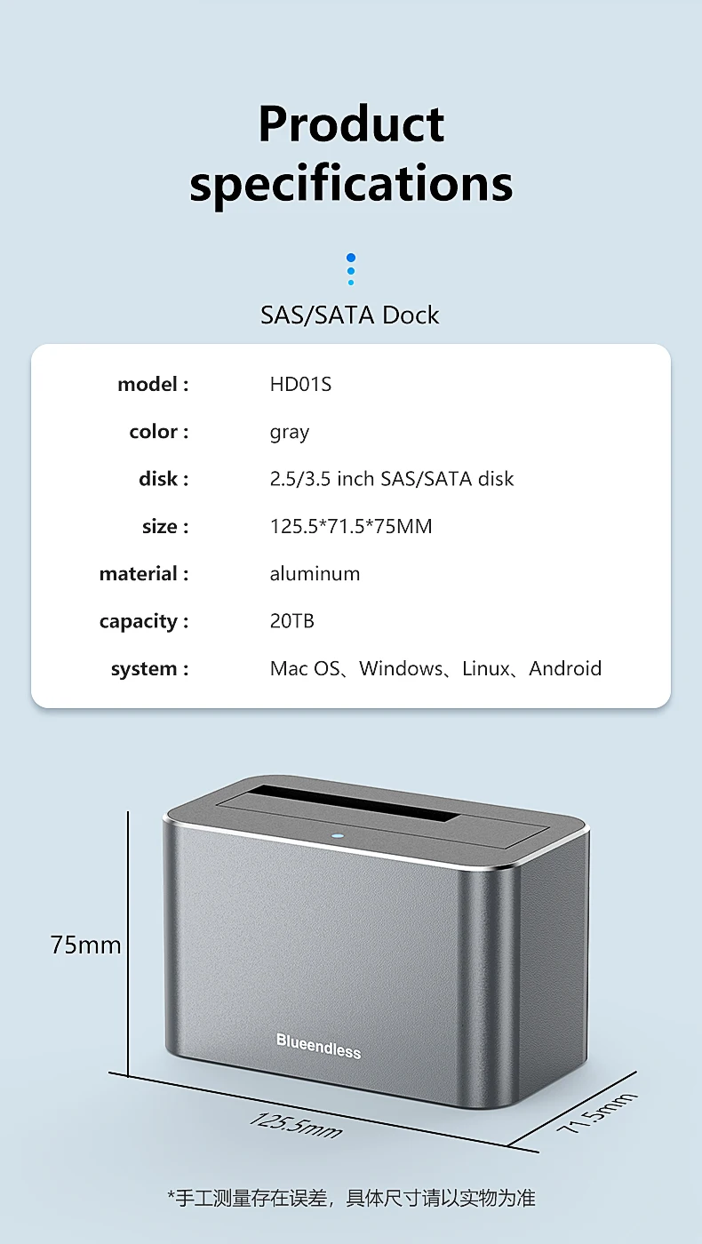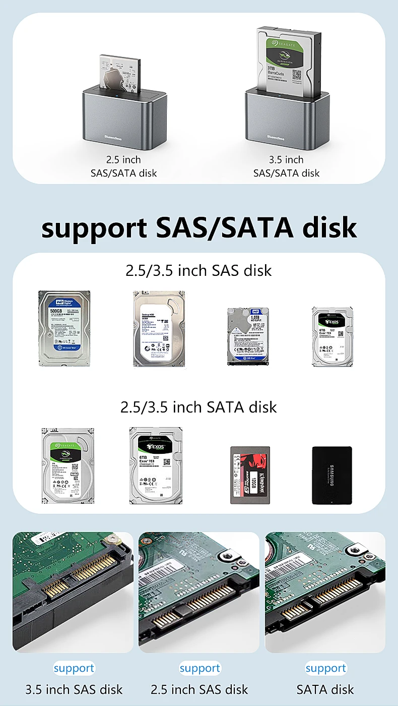 Blueendless 2,5/3,5 pulgadas SAS/SATA caja externa de disco duro Sata