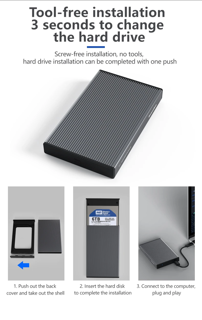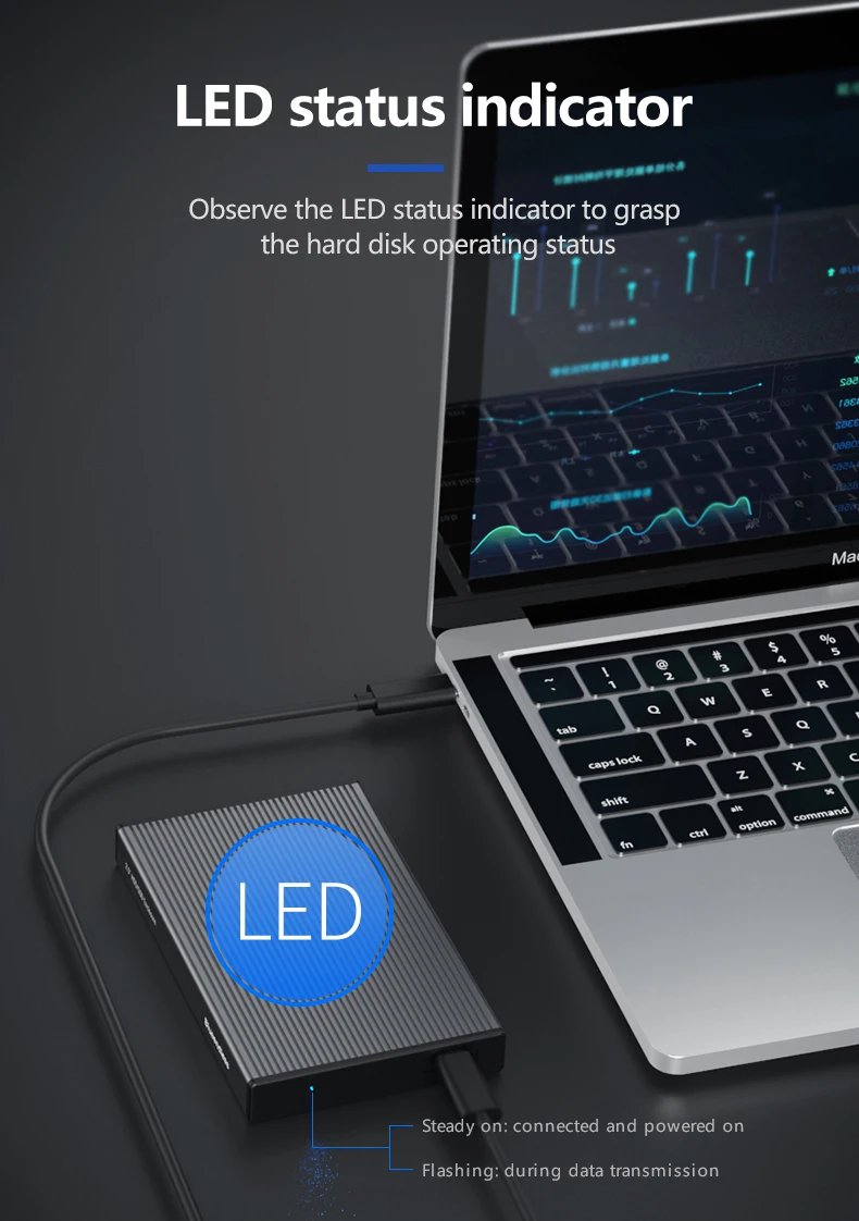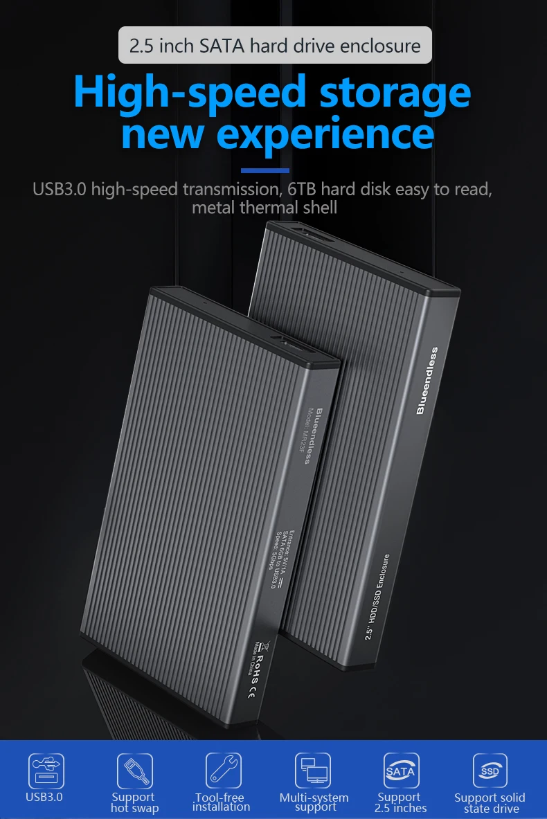 Caja de disco duro Blueendless de aluminio Caja de disco duro SATA de 2,5 pulgadas