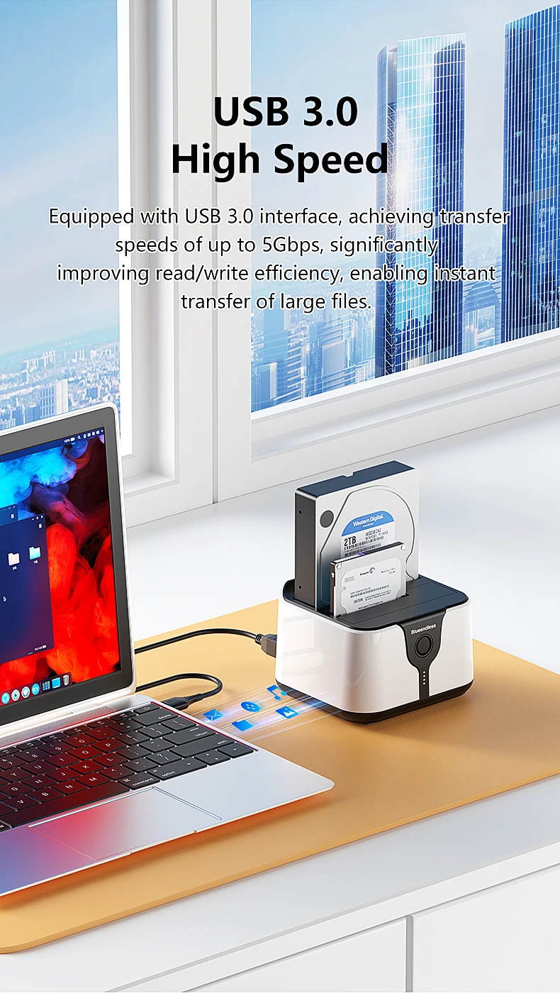 Comprar Blueendless-caja HDD de 2 bahías, estación de acoplamiento HDD, carcasa SSD, clon fuera de línea de doble bahía, adaptador SATA a USB 3,0 para disco SSD 2,5 3,5