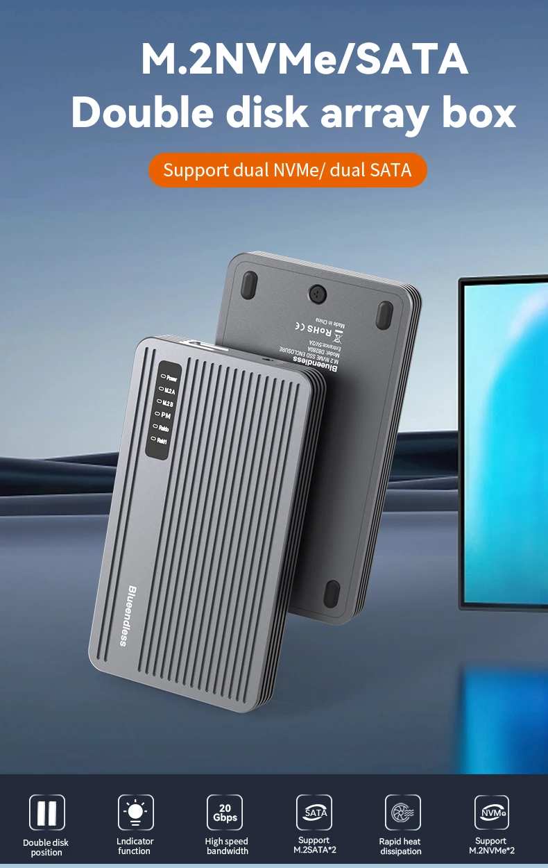 El gabinete funciona bien, pero la cubierta original no tenía ventilación, lo que provocó que los discos se calentaran mucho durante las transferencias. Diseñé e imprimí en 3D una cubierta de repuesto con doble abertura para el flujo de aire directo y el acceso al disipador de calor. ¡Ahora las temperaturas son mucho mejores! Si necesitas una mejor refrigeración, toma mi diseño imprimible: Busque en archivos impresos. sitio com "blueendless-db280a-nvme-cover-raid-enclosure" Dale me gusta a los archivos impresos si te resultó útil. Producto sólido en general, solo necesita ventilación para uso intensivo. Estoy usando el disco en modo PM y, a través de passthrough de Proxmox, lo conecto a RAID de software a través de Xpenology.