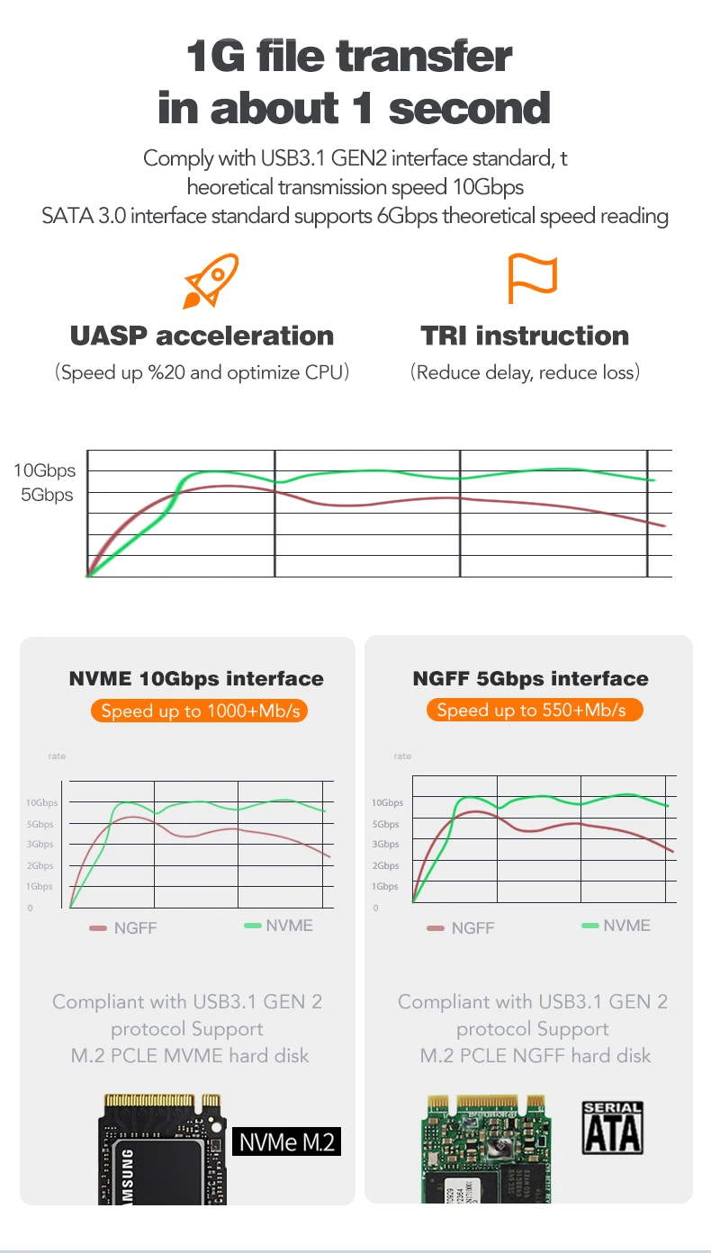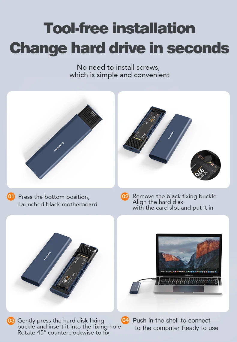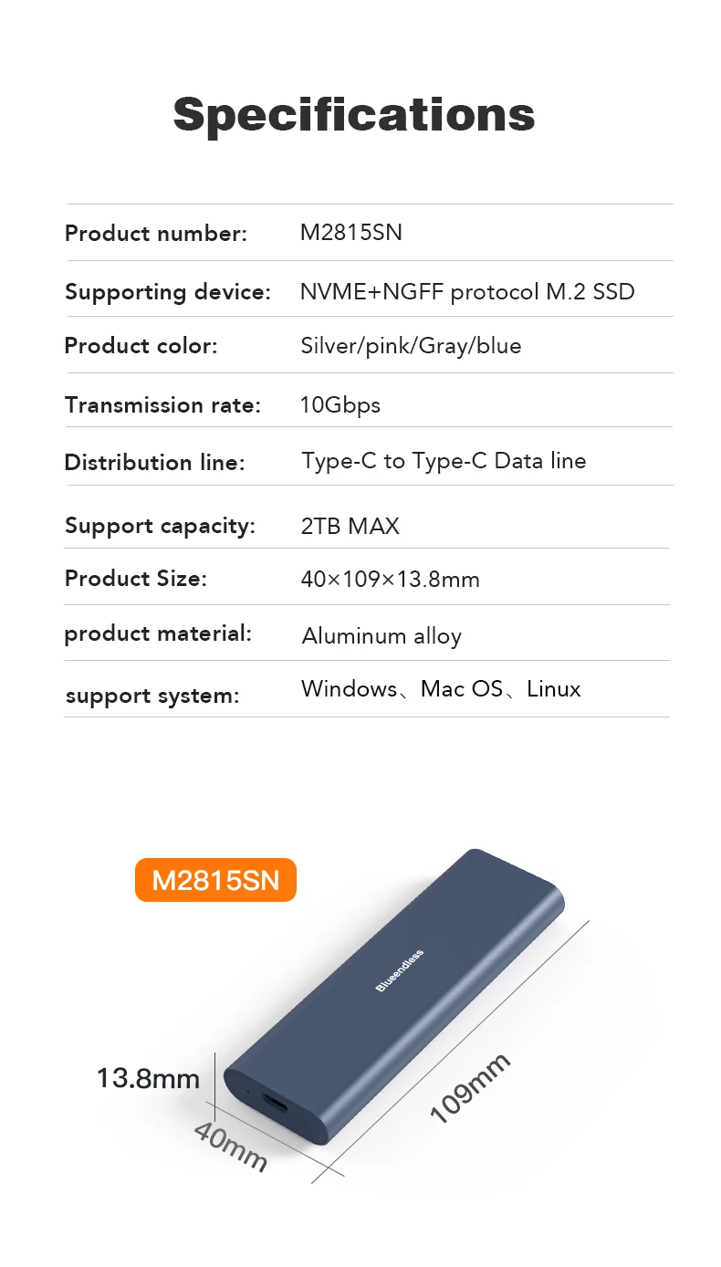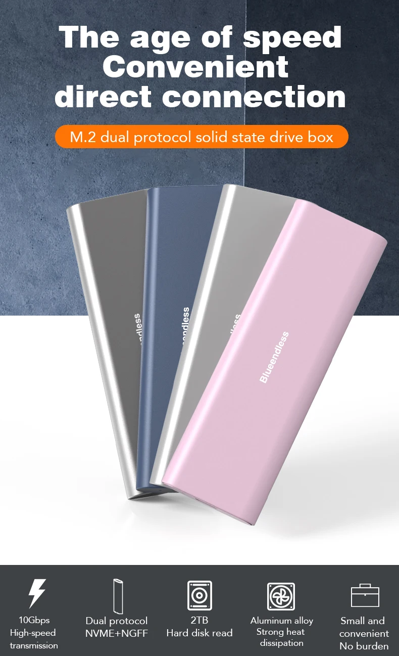 Comprar Blueendless-carcasa de aluminio colorida tipo C3.1, soporte de protocolo Dual más grande de 2TB, NVME SATA, carcasa M.2 SSD libre de herramientas