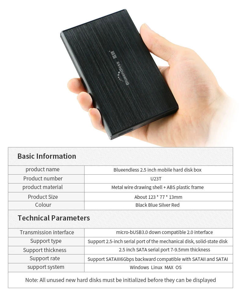 Comprar Blueendless-carcasa de aluminio HDD Sata a usb 3,0, caja para disco duro de 2tb, 2,5 pulgadas, hdd caddy para OS/Windows/MAC