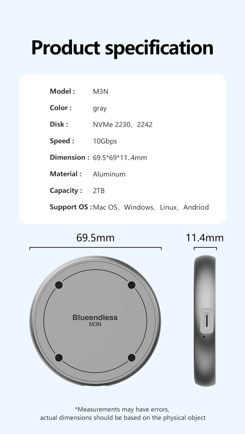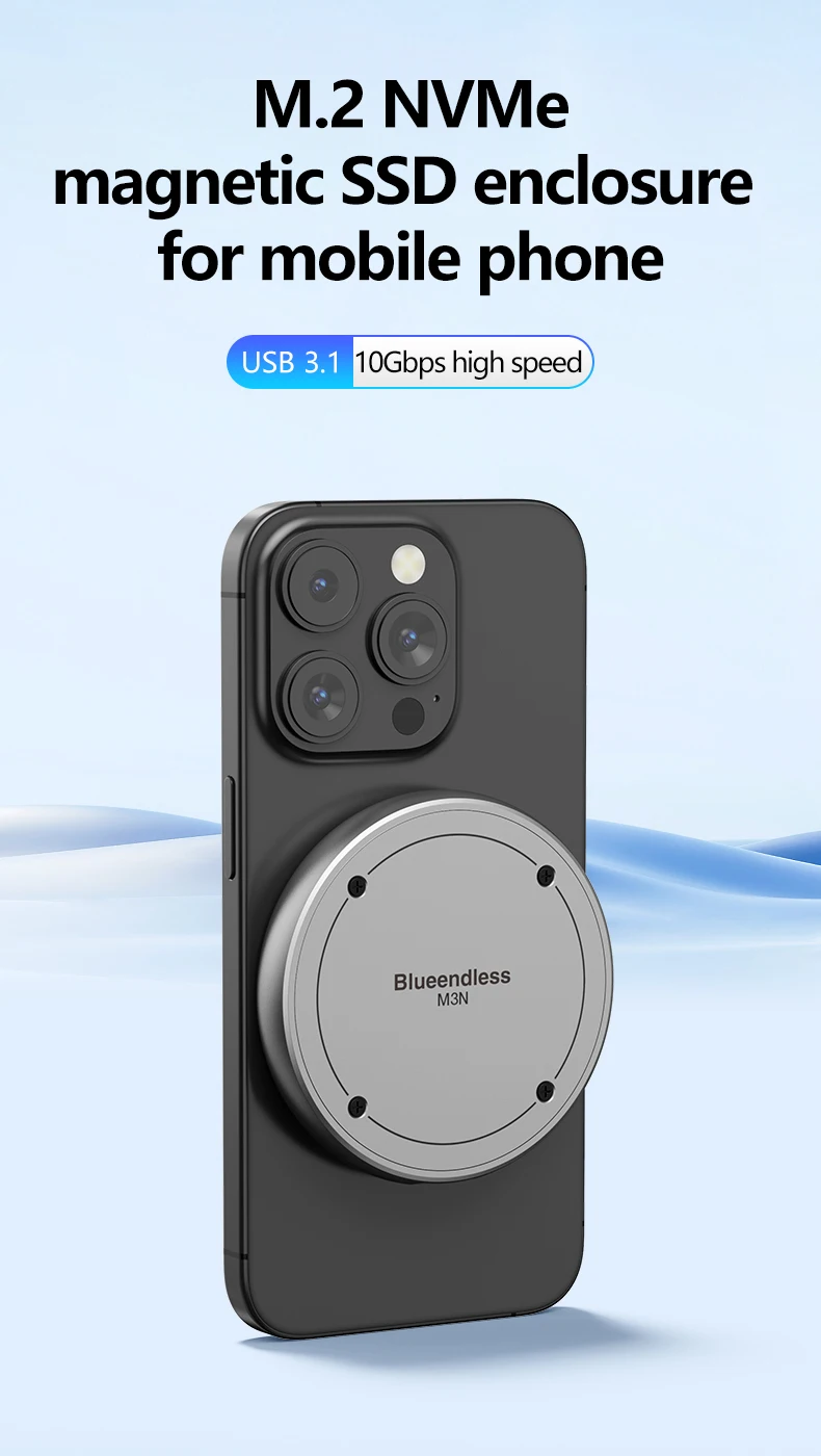 Comprar Blueendless-carcasa magnética M.2 NVMe para teléfono móvil, carcasa SSD, 10gbps, tipo C, USB3.1 a NVMe PCI-E, para Iphone y Magsafe