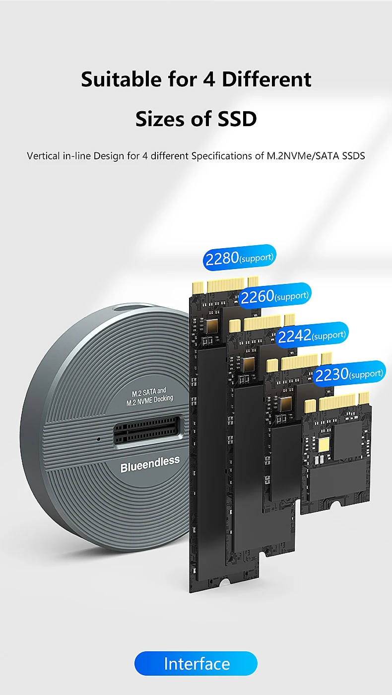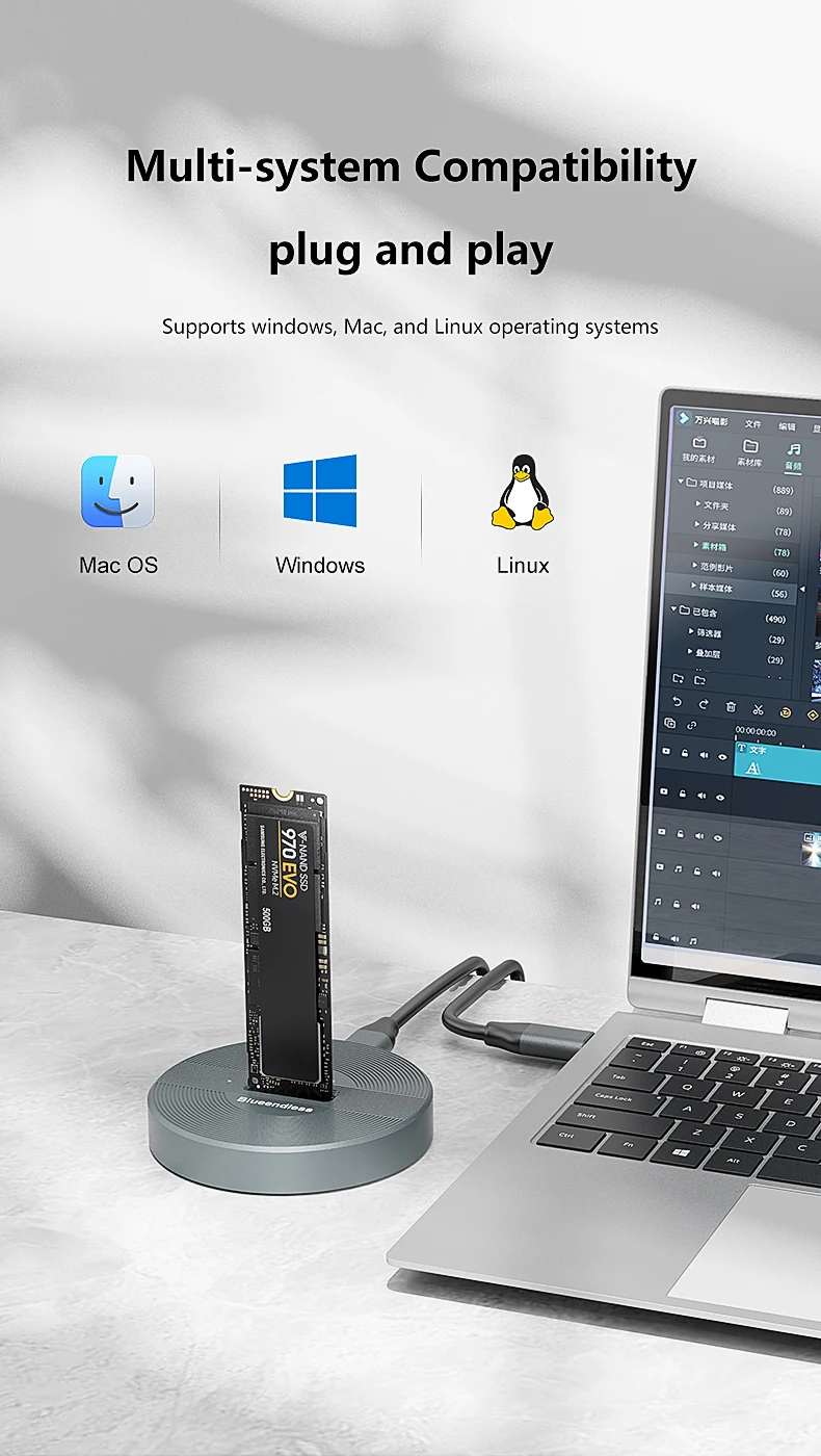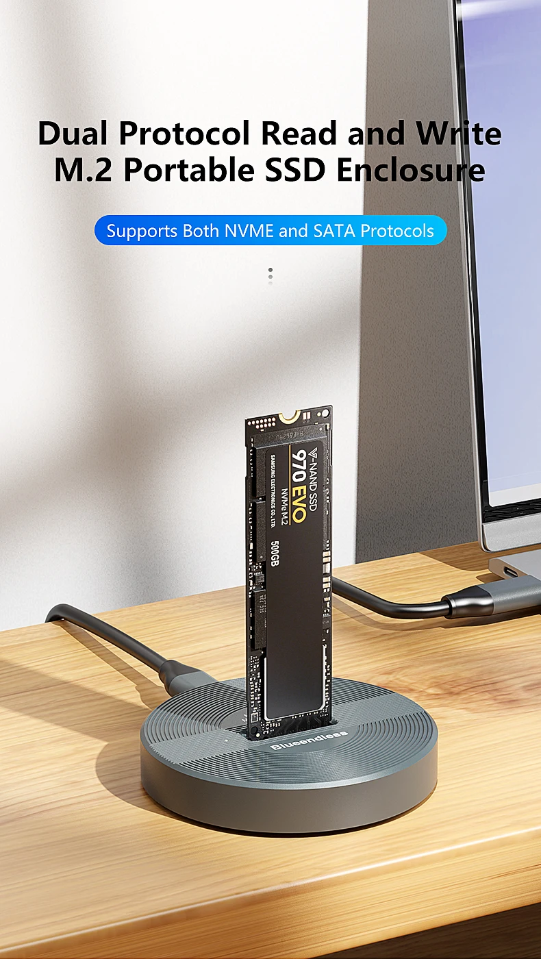 Comprar Blueendless-carcasa de ssd m.2, estación de acoplamiento de protocolo Dual, PCIe, NVme, tipo C, Usb3.1 para disco sólido 25, carcasa de aluminio M2
