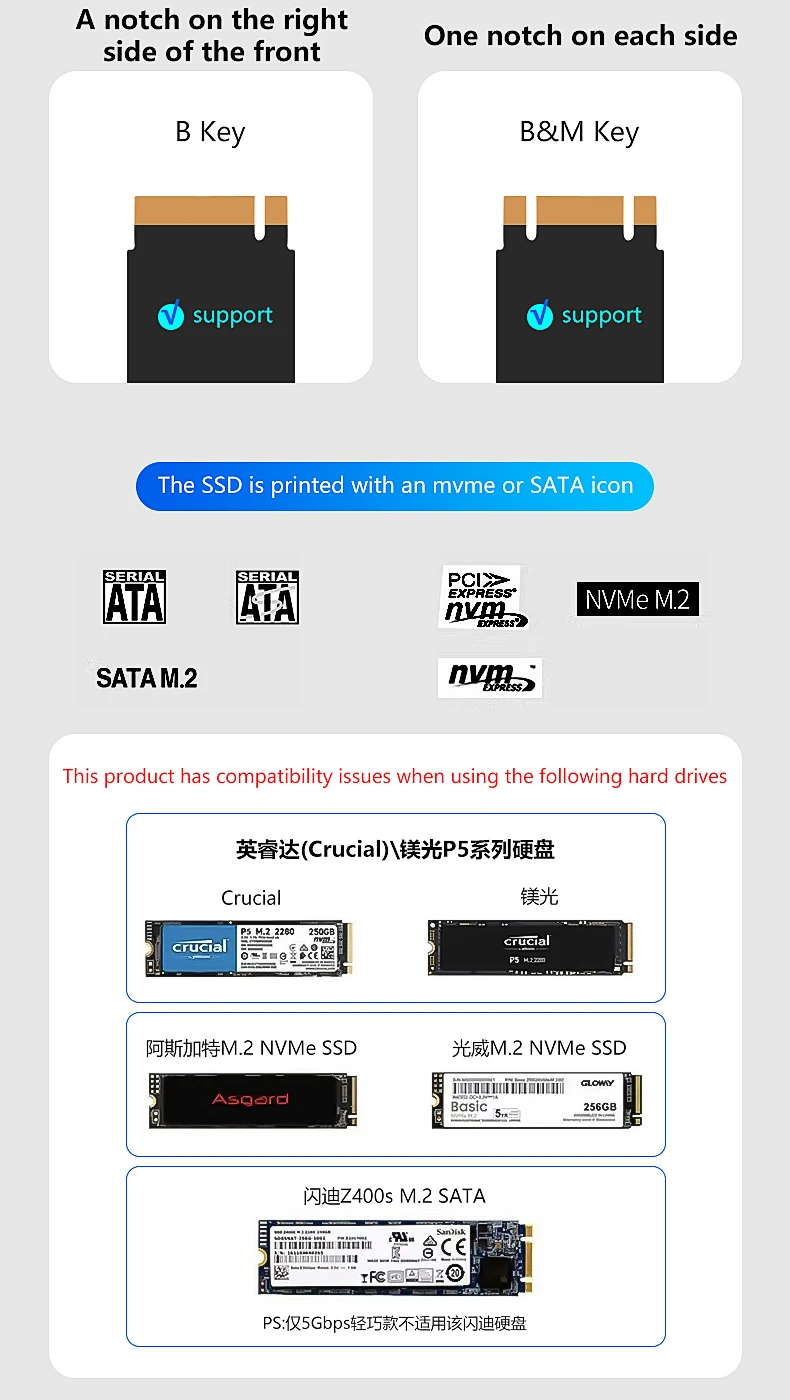 SD03PA se adapta a m.2 ngff SATA SSD o m.2 NVMe SSD