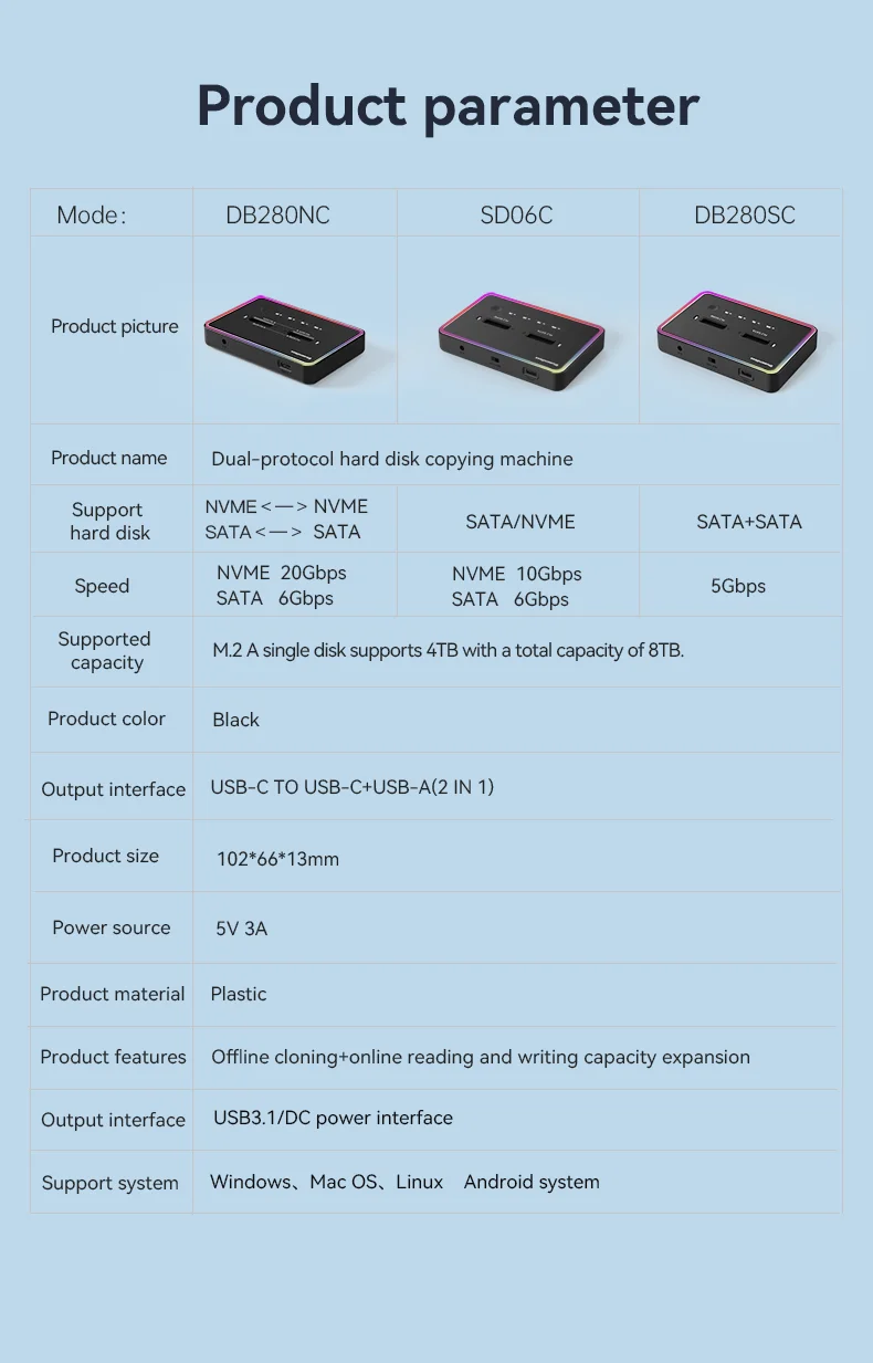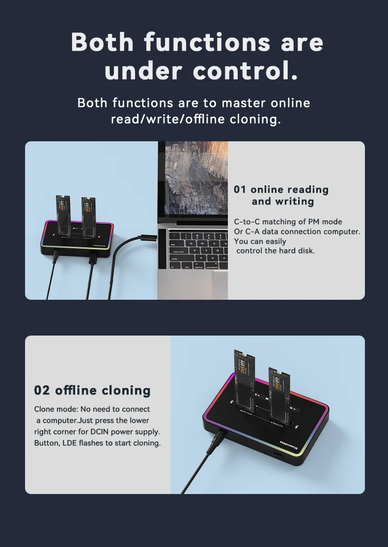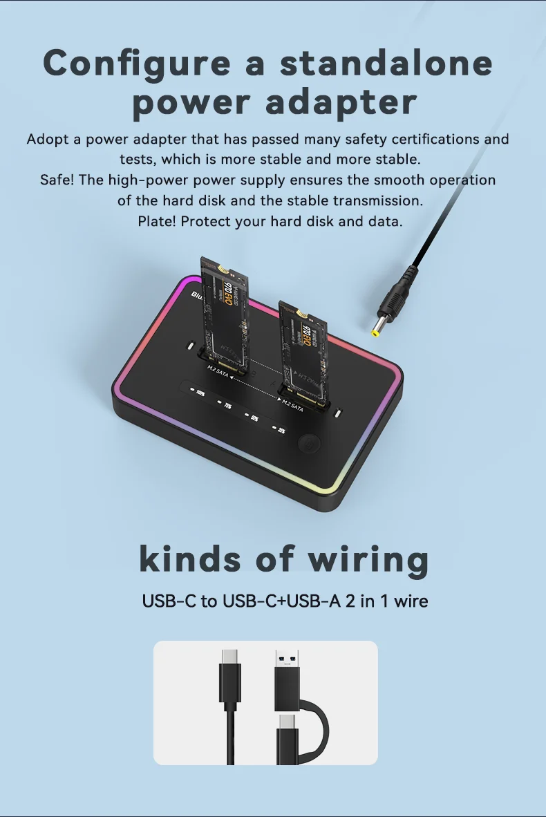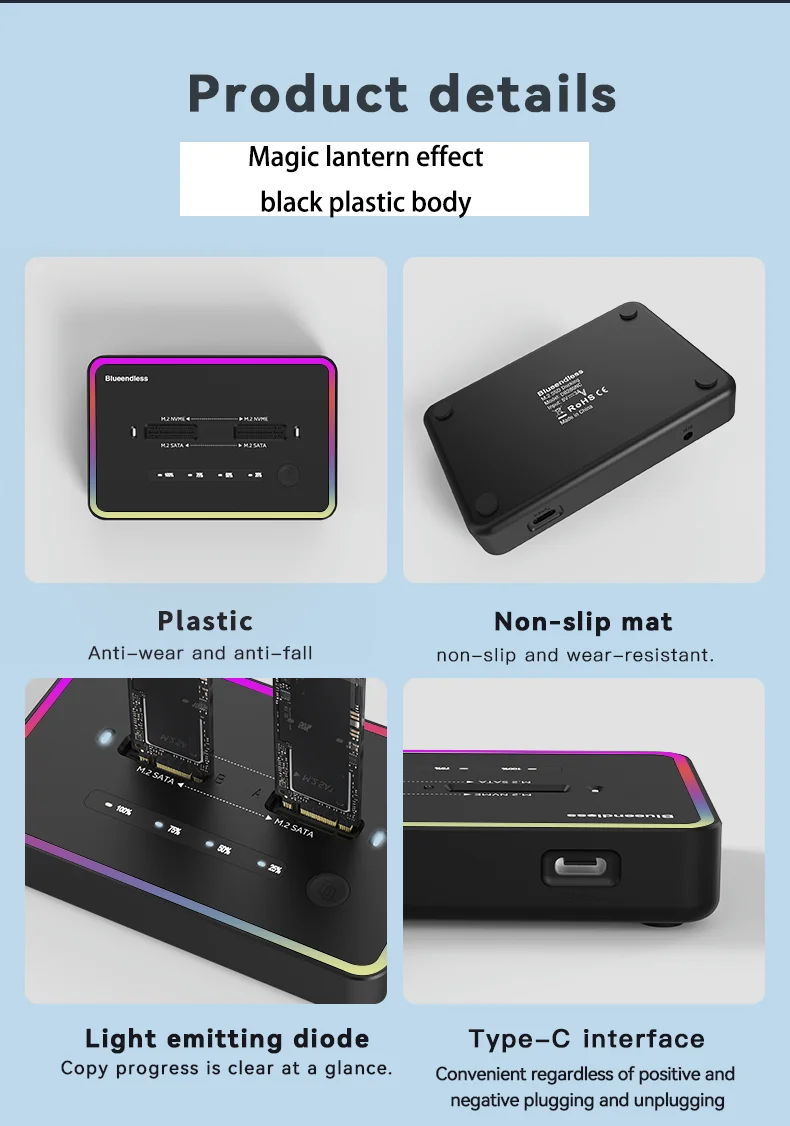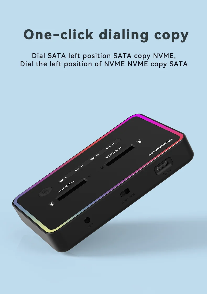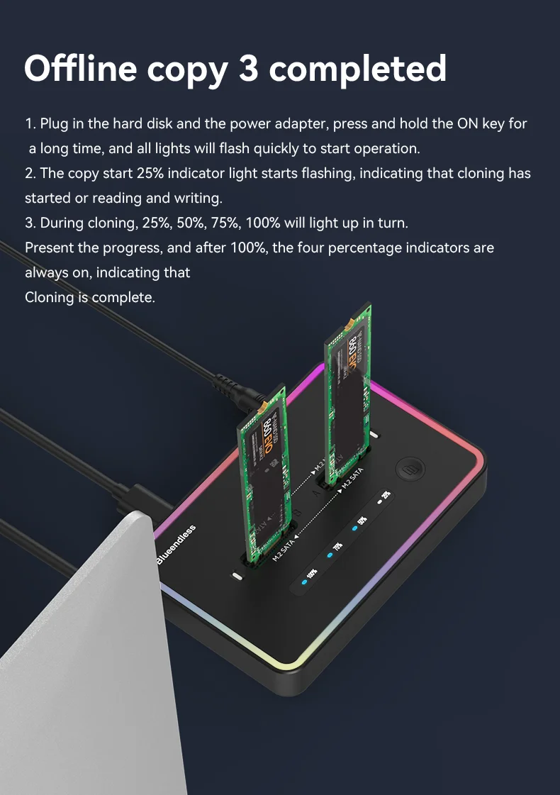 Estación de acoplamiento Ssd con caja SSD m.2 de doble protocolo clon sin conexión Blueendless