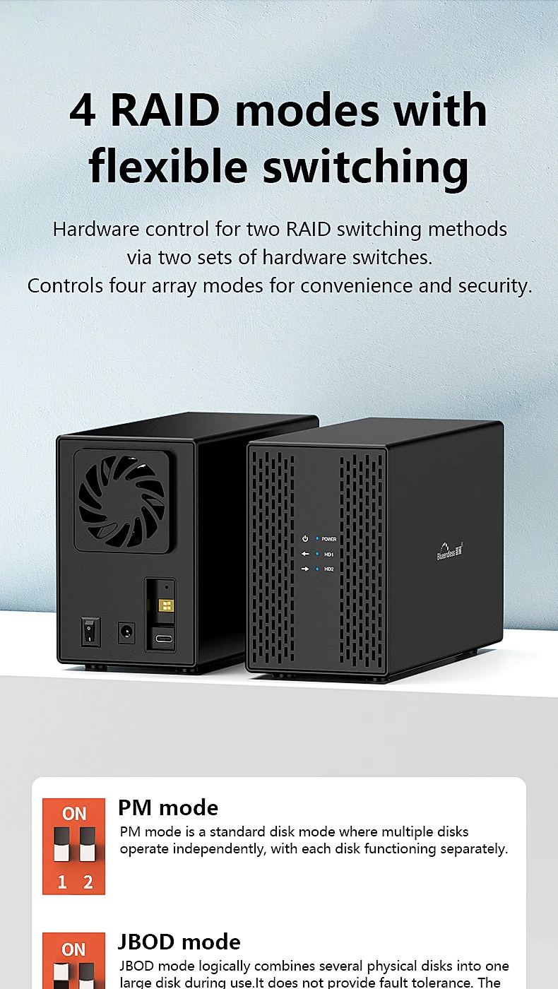 DB3502F:3.5 Usb 3.0 Type - c to USB-A Dual bay hard drive enclosure without RAID functionality.