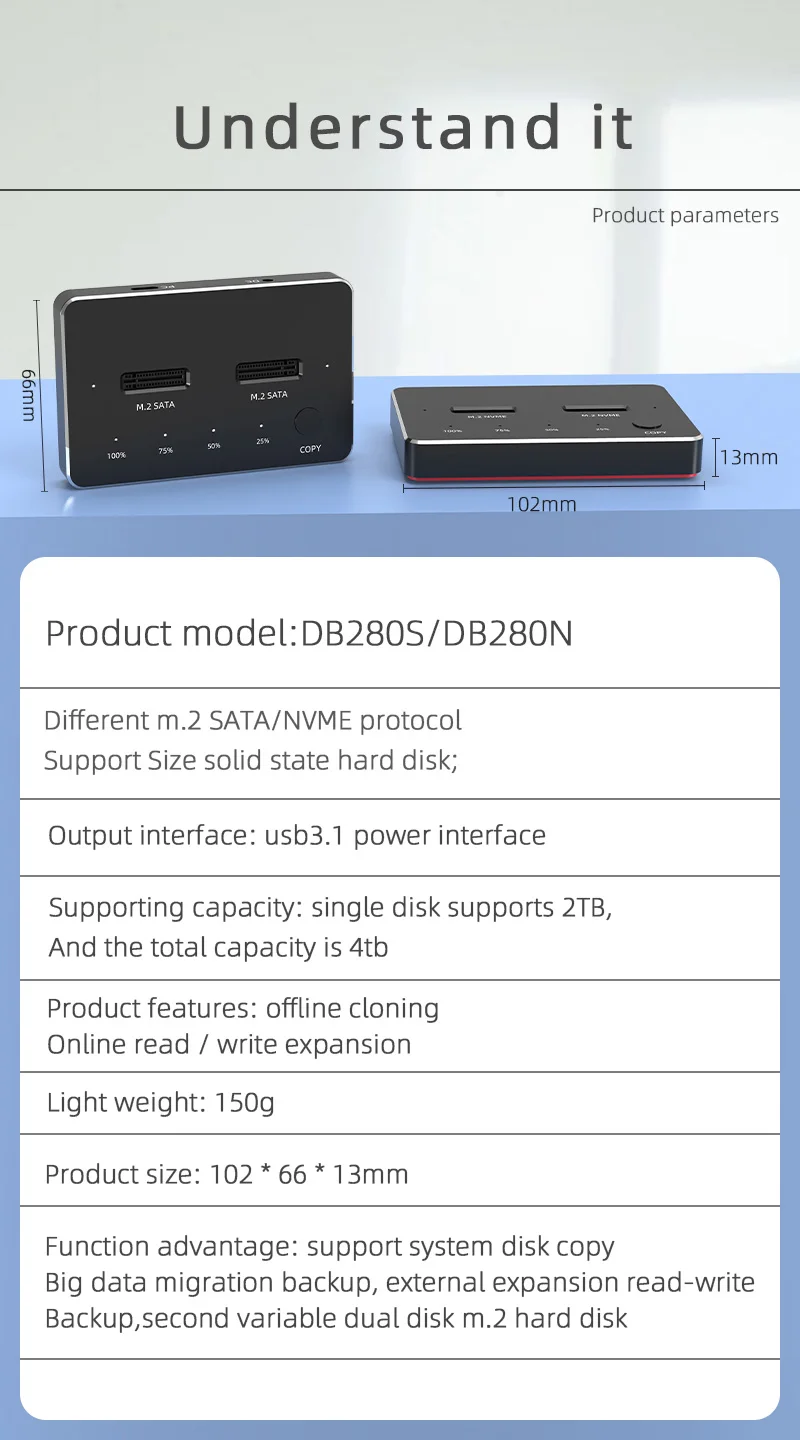 DB280N: Para SSD NVME M.2 de 2 bahías, Velocidad: 20Gbps